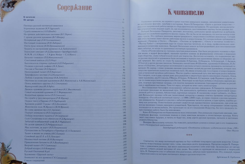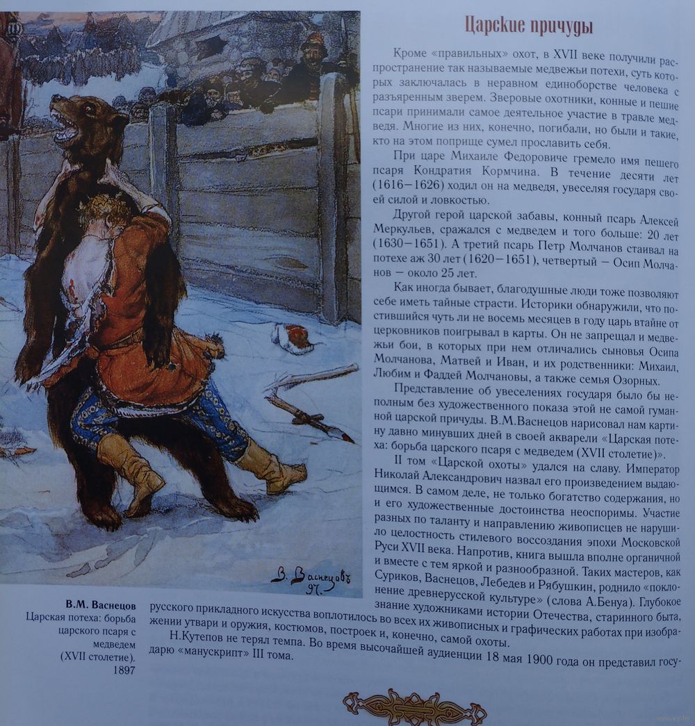 Отпечатано в Турции. Подарочное издание. Большой энциклопедический формат. Мелованный альбом. Ляссе. В книге-альбоме рассказывается об истории русской охоты со времен Киевской Руси до конца XIX века, о художниках и скульпторах России, выбравших для своих работ охотничью тематику. Автор знакомит с историей создания картин, акварелей и произведений малой пластики, запечатлевших сцены различных видов охоты – одного их любимейших занятий нашего народа. Книга содержит интересные сведения о жизненном и творческом пути известных и забытых представителей отечественной культуры. Изложение материала ведется в форме популярного очерка, рассчитанного на широкий круг читателей.