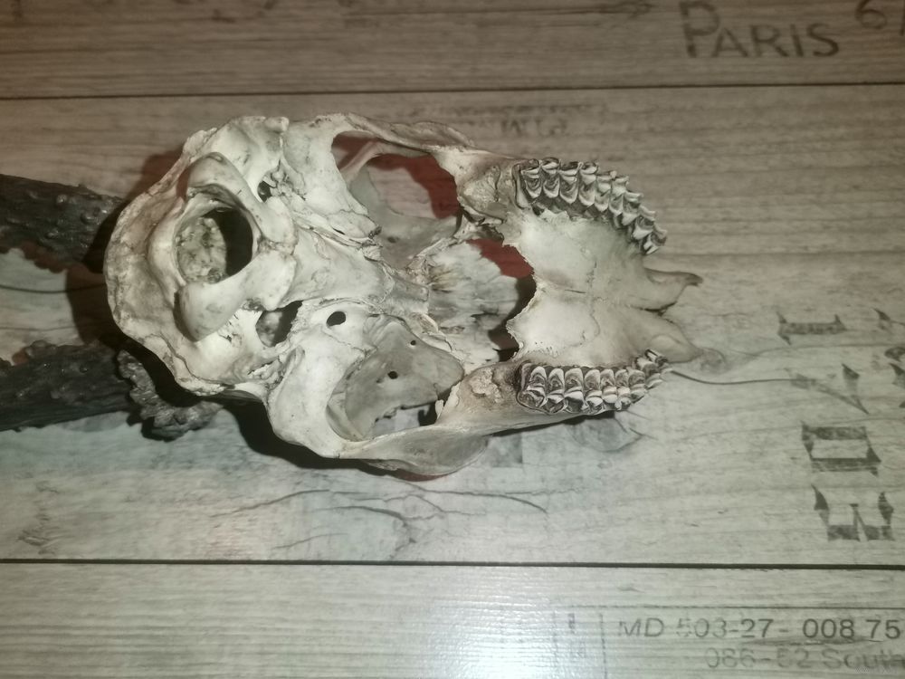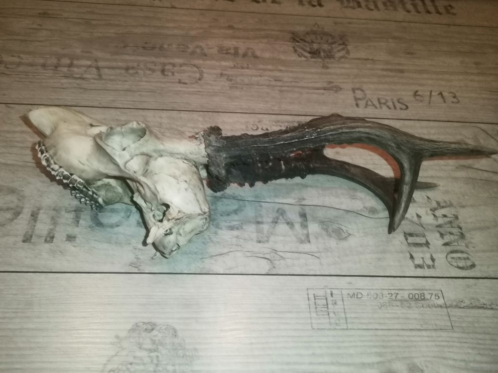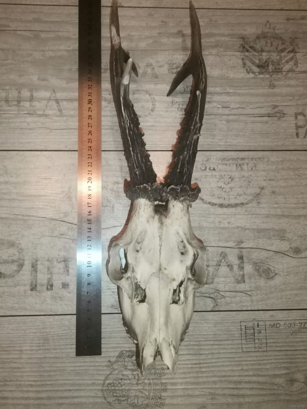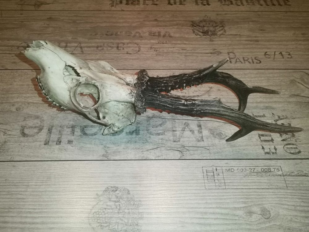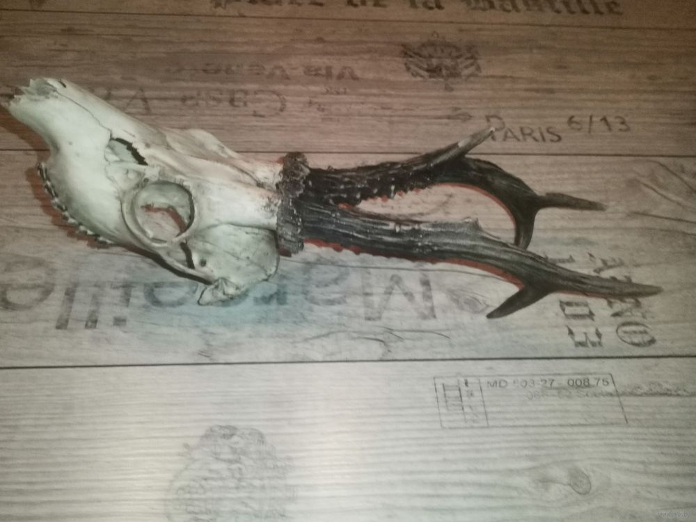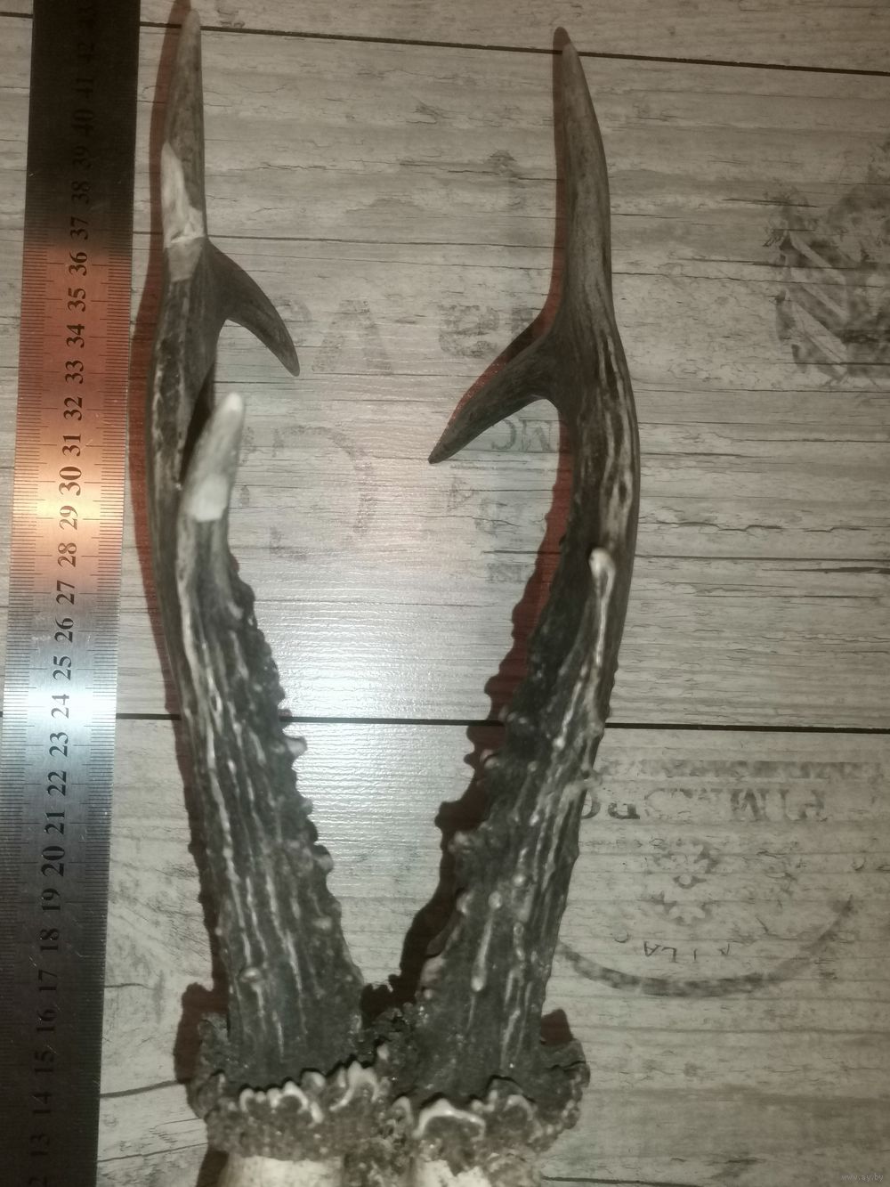 Охотничий трофей-рога косули, общая длина 40 см.