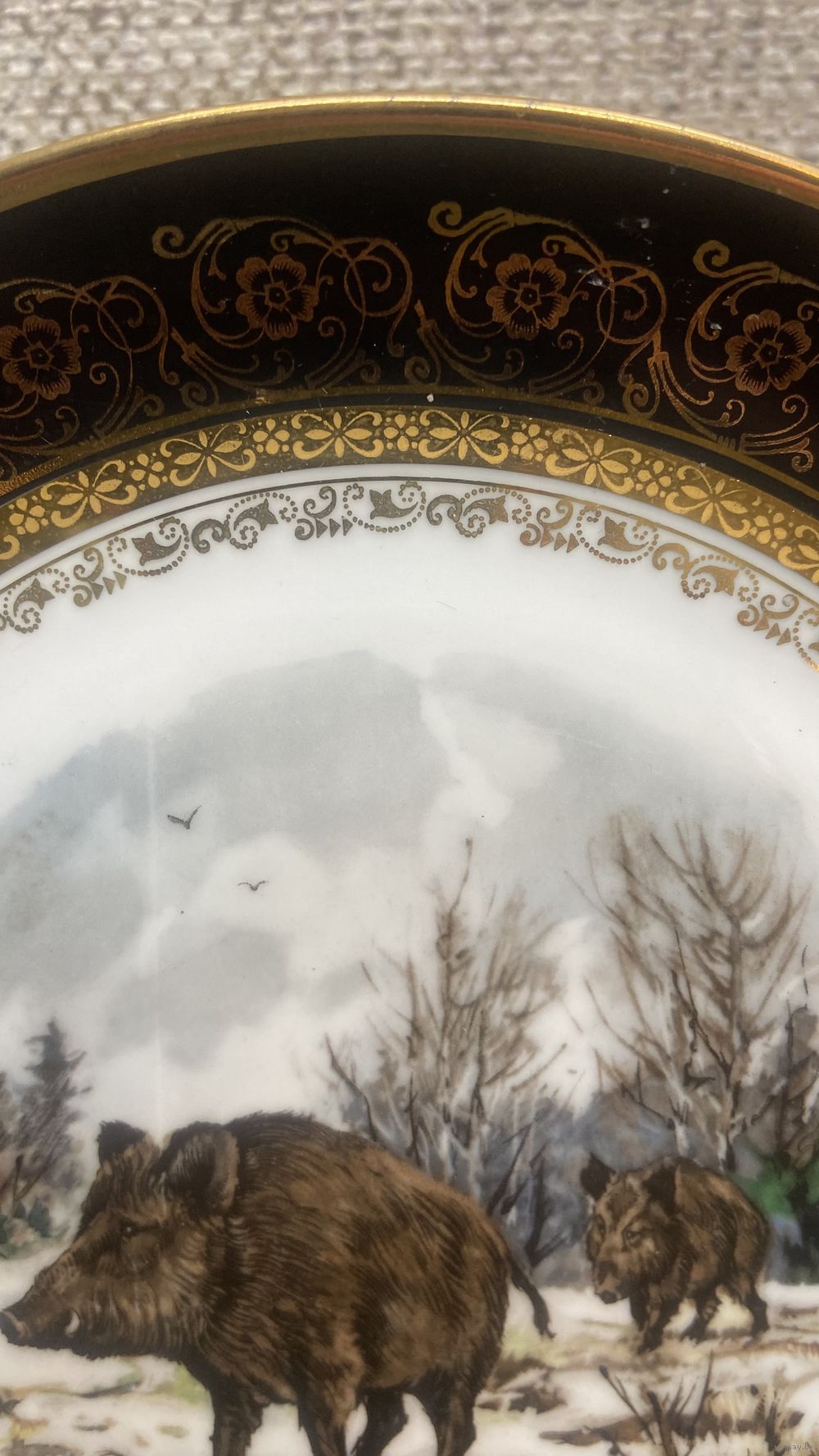 Охотничья фарфоровая тарелка Eschenbach Bavaria. Фазаны . Германия 23.5 см. Справа по ободу очень мелкий скол
