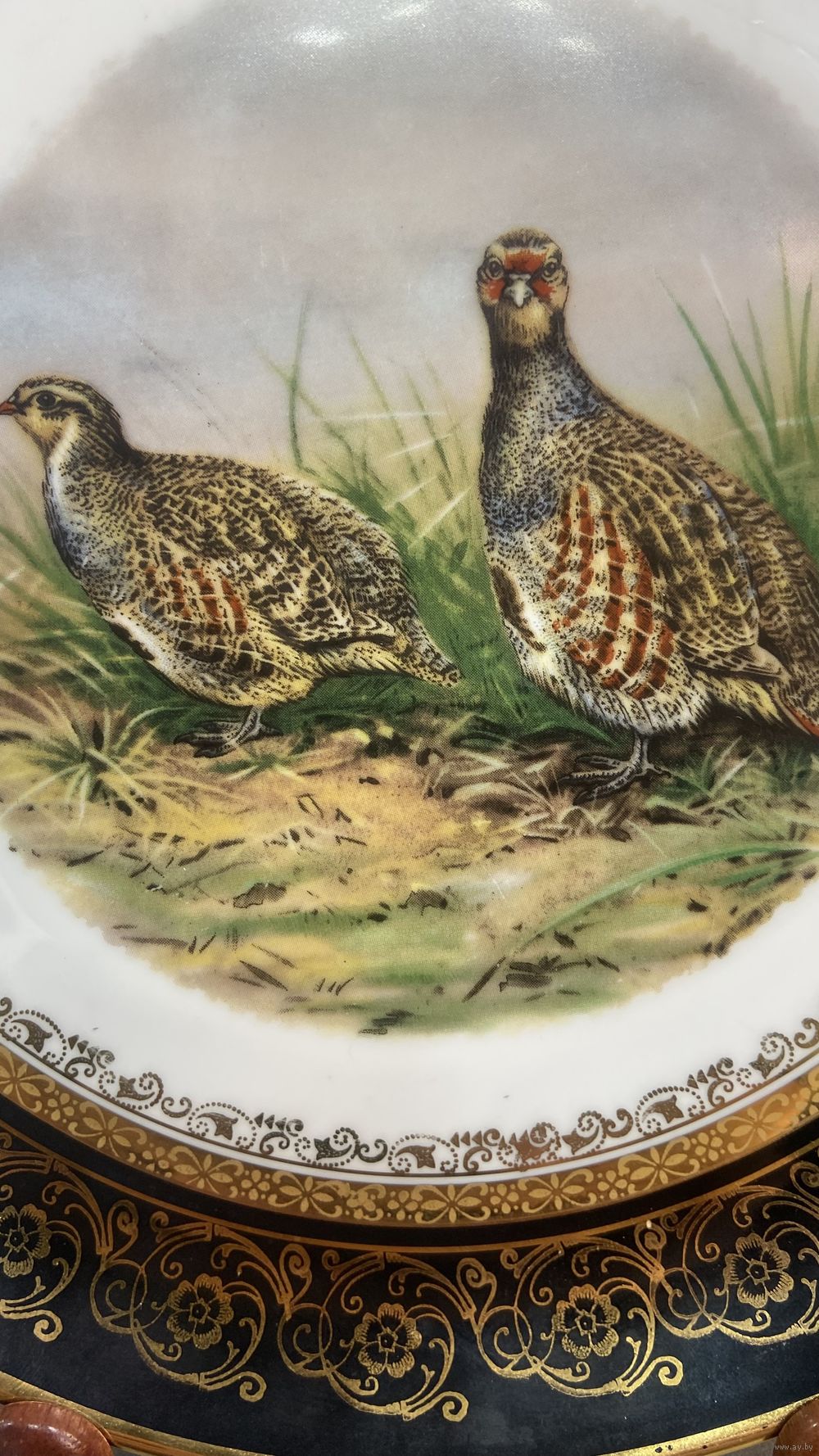 Охотничья фарфоровая тарелка Eschenbach Bavaria. Серые куропатки. Германия 23.5 см.