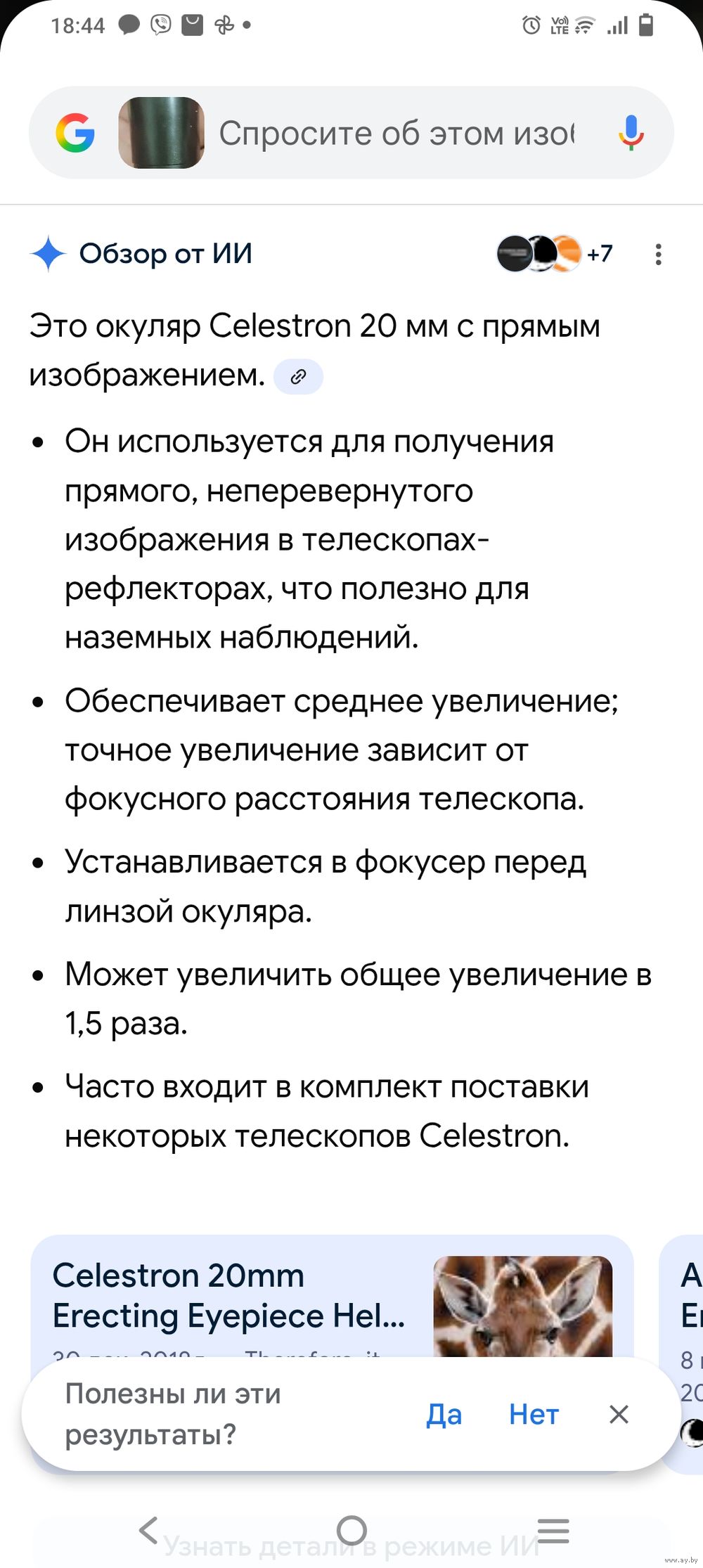 Окуляр от астрономического телескопа CELESTRON 20 mm