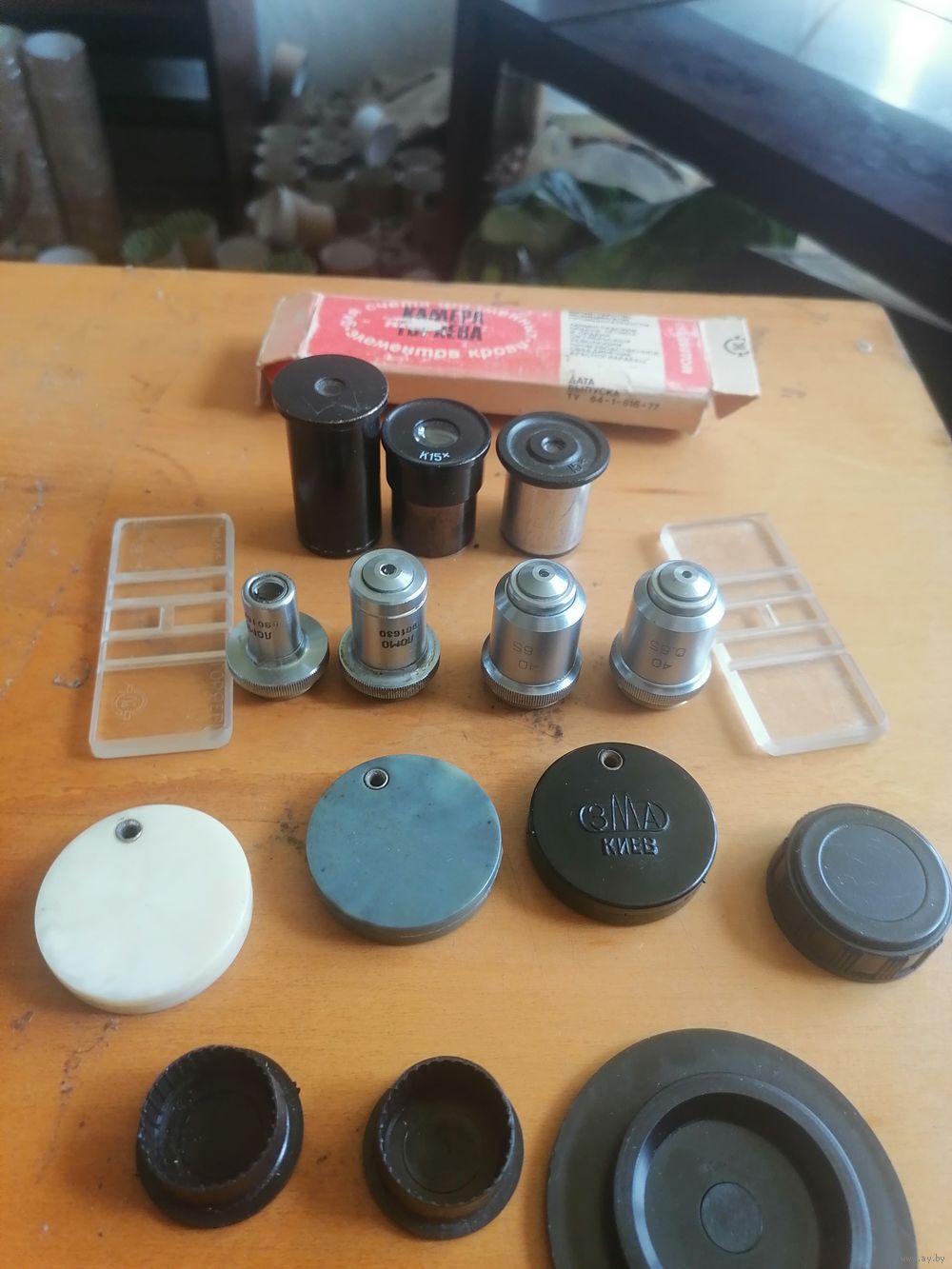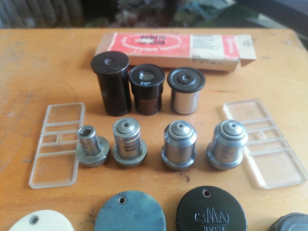 Окуляры микроскопа и др.См.фотоОбъективы для микроскопа "ЛОМО". Кратность разная. Ретро СССР. 10*0.20-1шт.0.65-2шт.0.75.0.20.См.фото.За все.