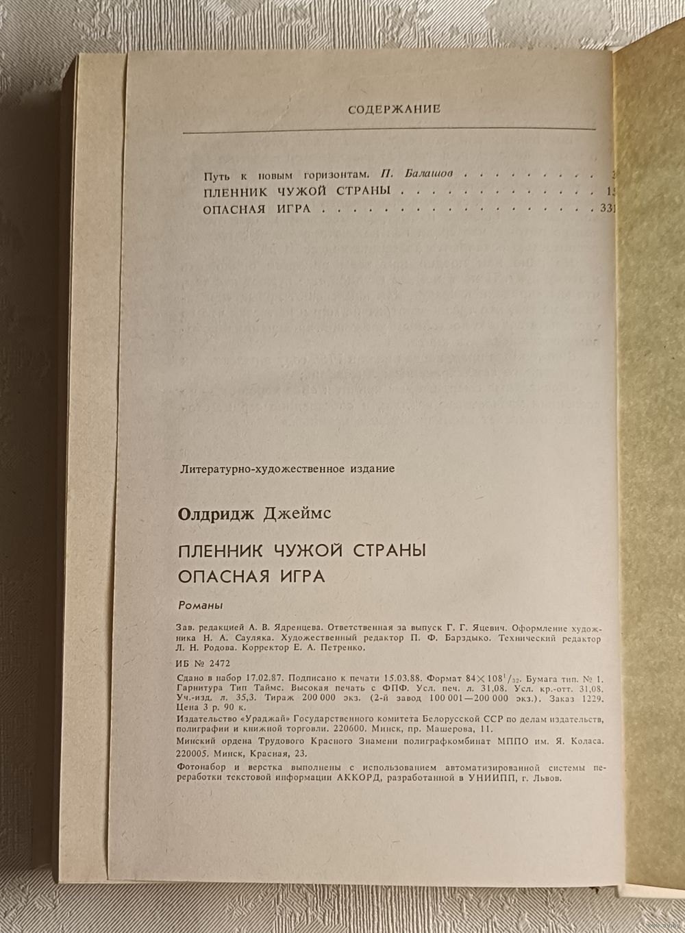 Олдридж Джеймс. Пленник чужой страны. Опасная игра. Романы. Мн.: Ураджай, 1988.- 592 с.