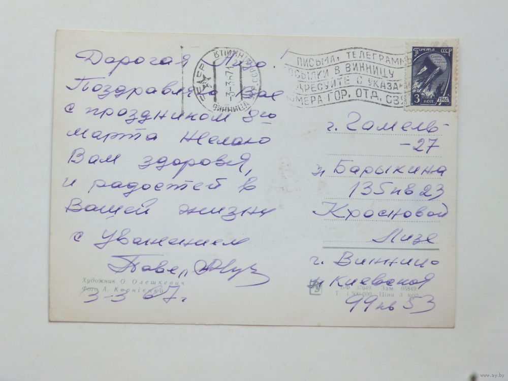 Олешкевич 8 марта 1967 10х15 см