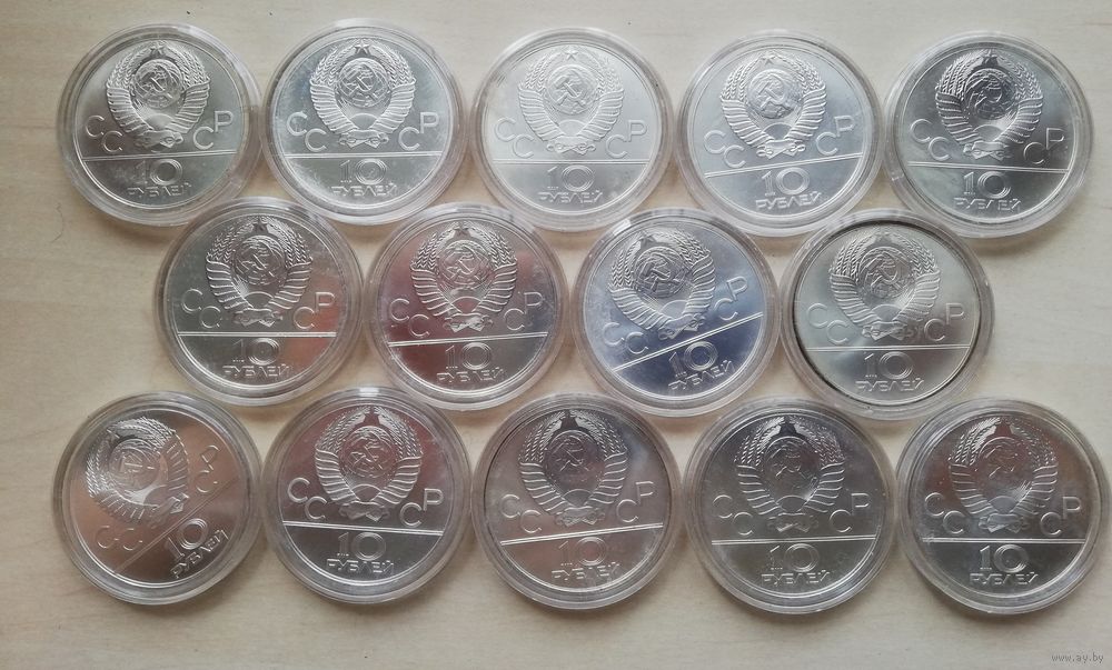 10 рублей * 14 штук, серебро проба 900, 33.3гр