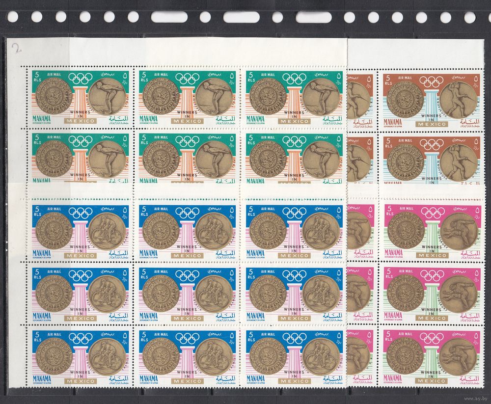 Олимпиада Мехико Спорт 1968 Эксклав Манама Эмират Аджман MNH концовка серии 4 м Х 9 Лот