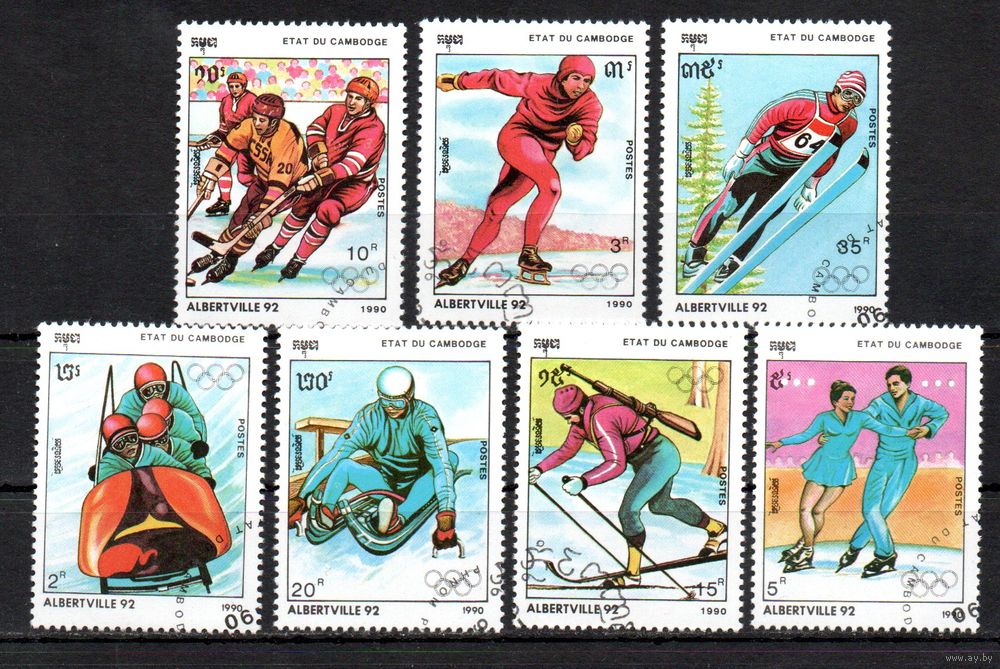 Олимпийские игры в Альбервиле Камбоджа 1990 год серия из 7 марок