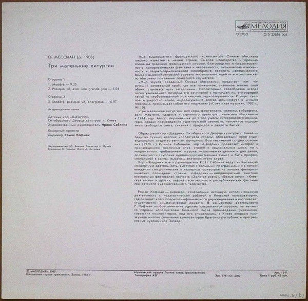 Оливье Мессиан - “Shchedrik” Children’s Chorus – Три Маленькие Литургии - Trois Petites Liturgies De La Présence Divine