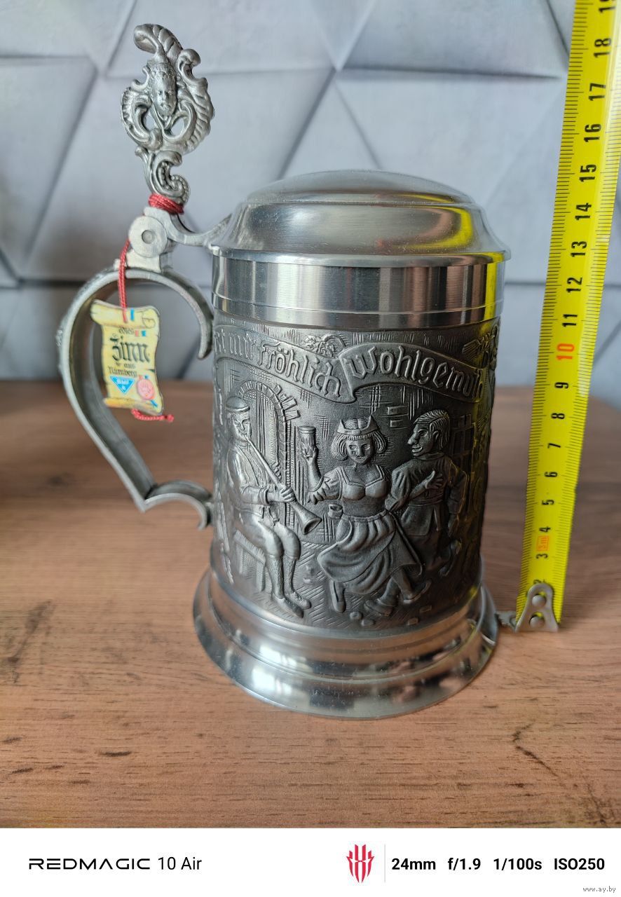 Оловянная пивная кружка. Производитель BMF. Пищевое олово. Объем - 650 мл. Изготовлена во второй половине 20 века. Из личной коллекции.
