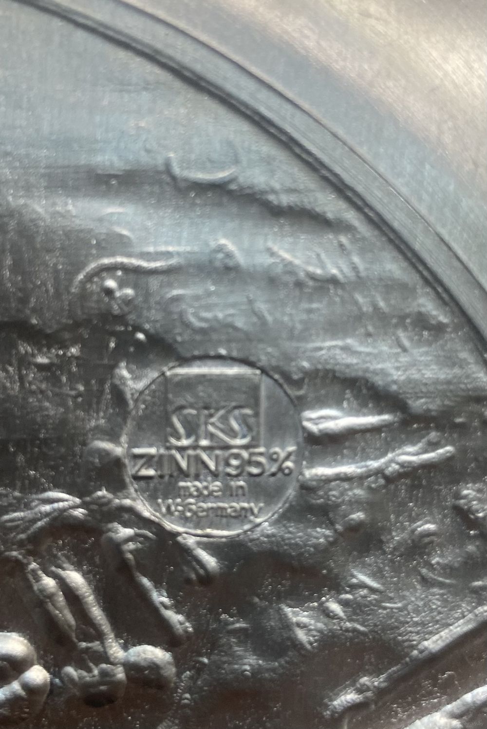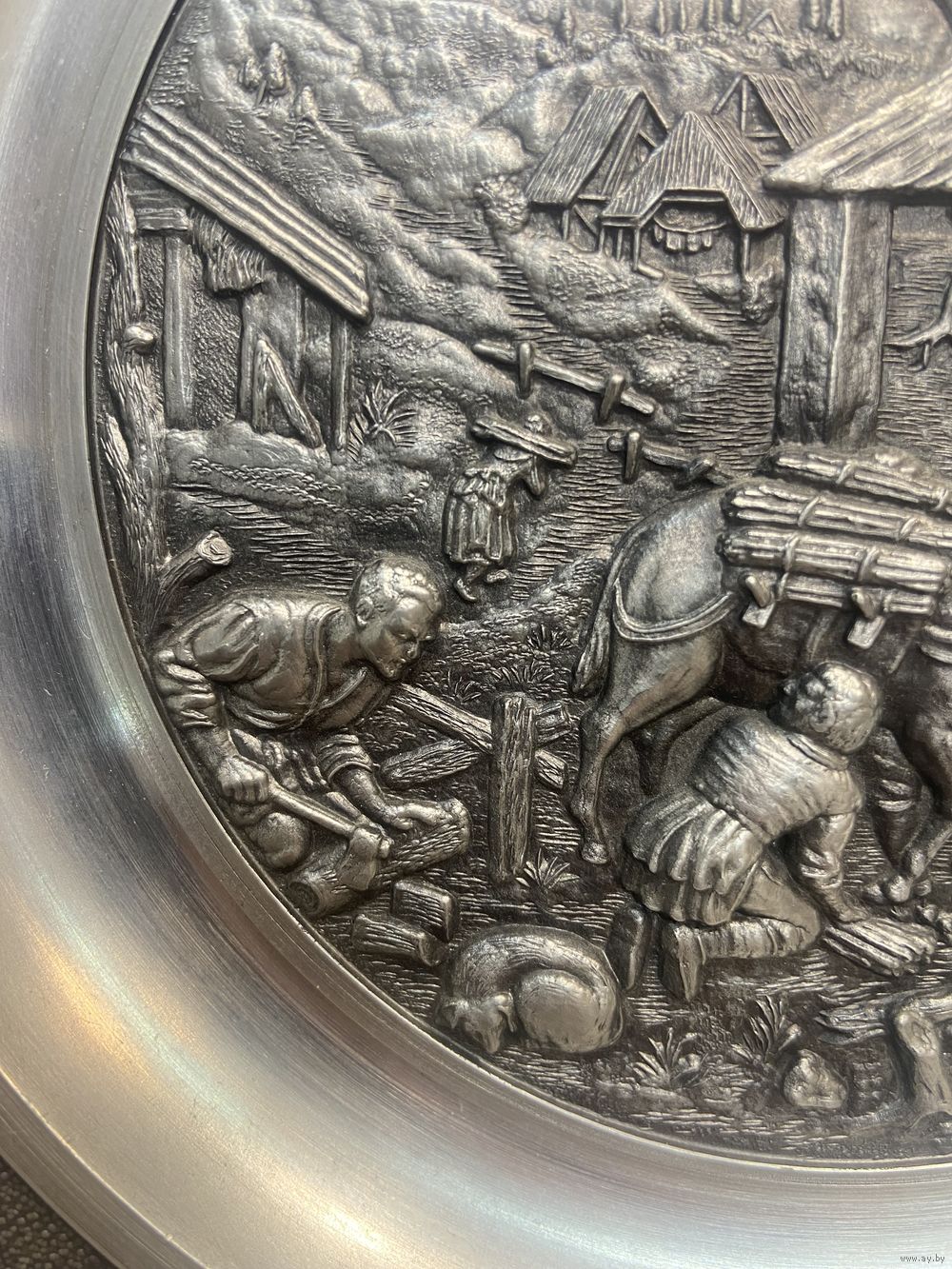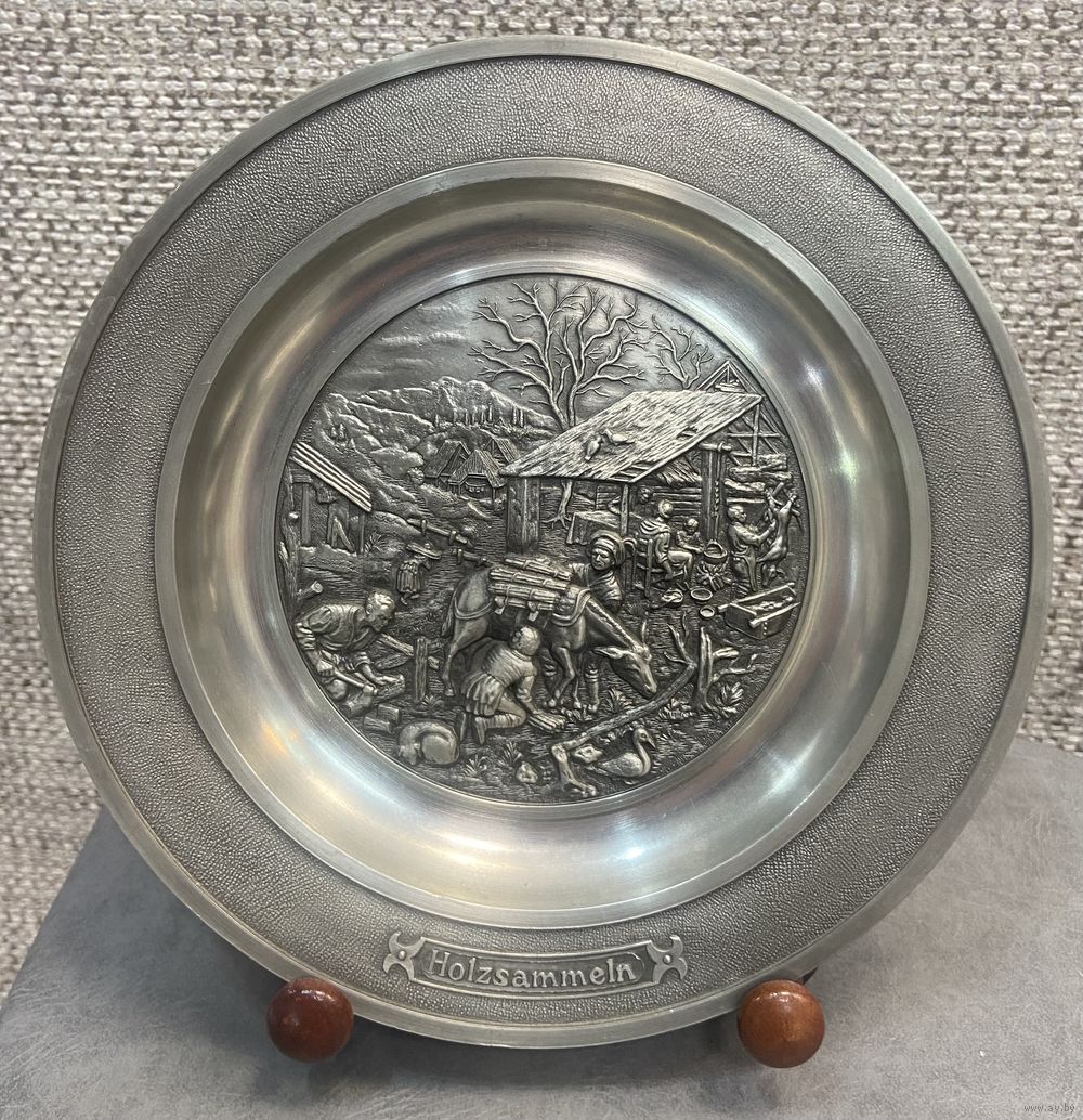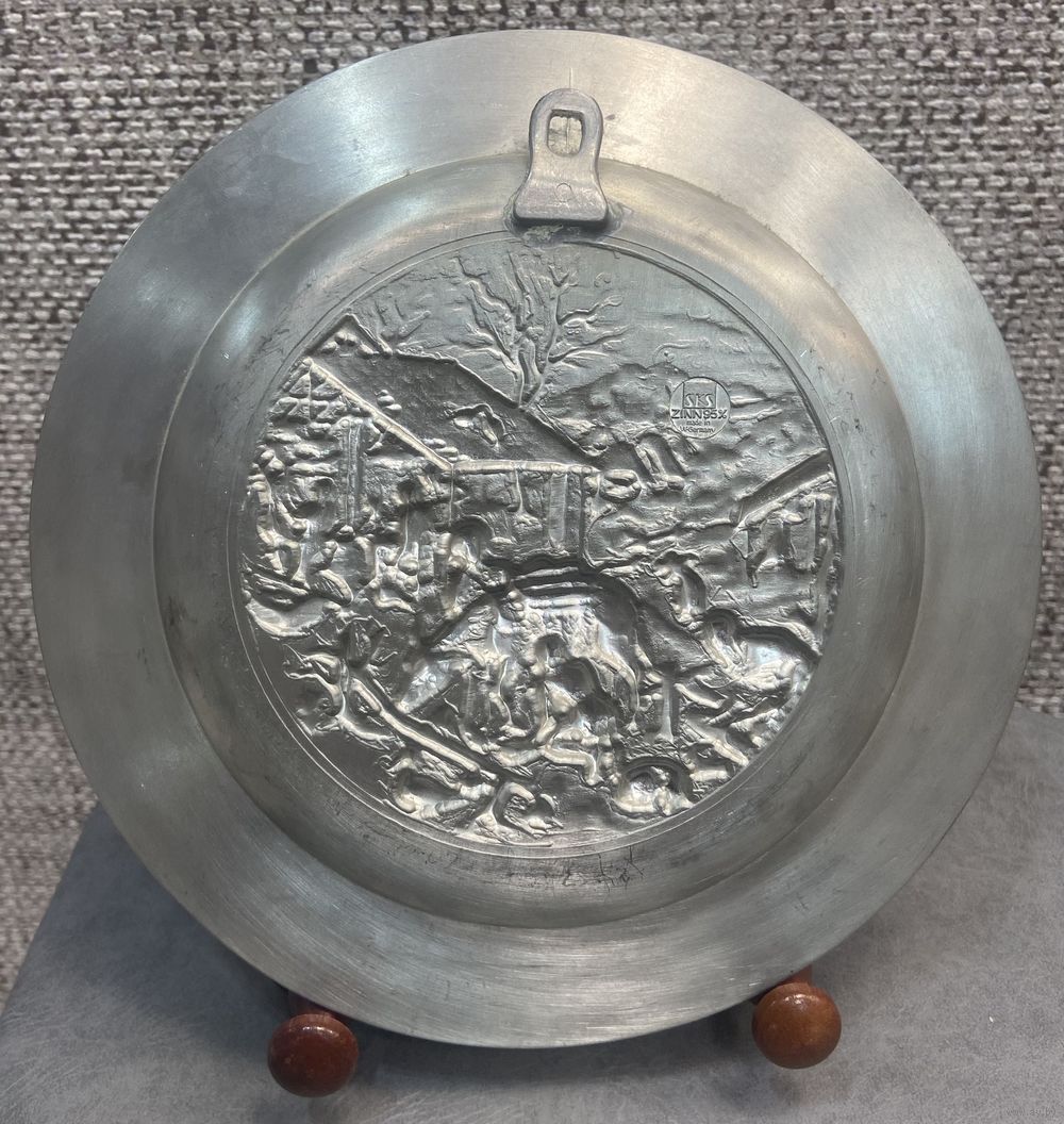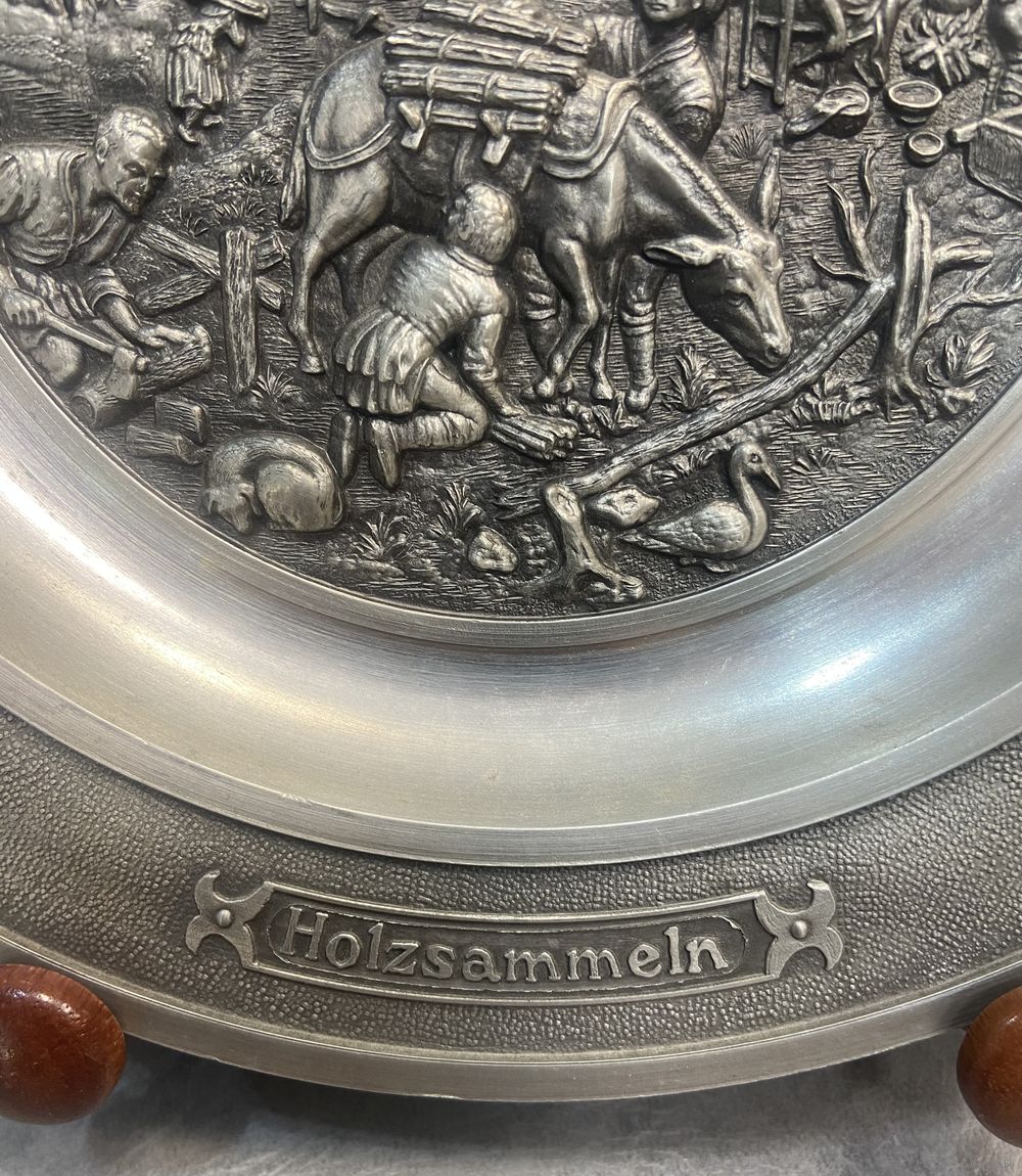 Оловянная тарелка с рельефным изображением Holzsammeln SKS Германия. 21 см