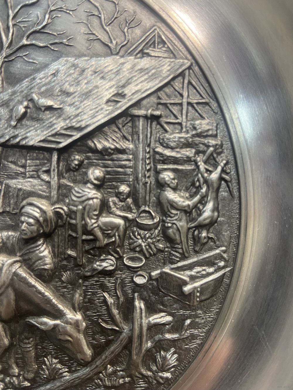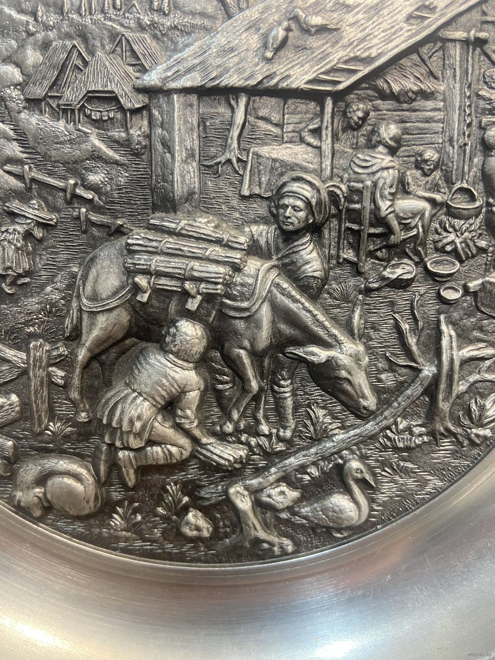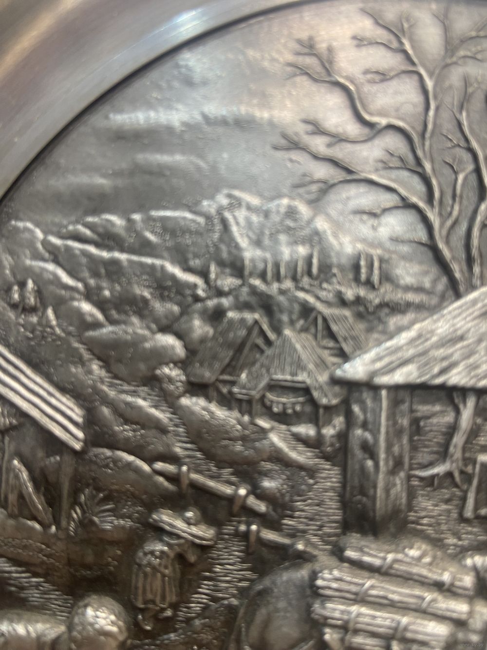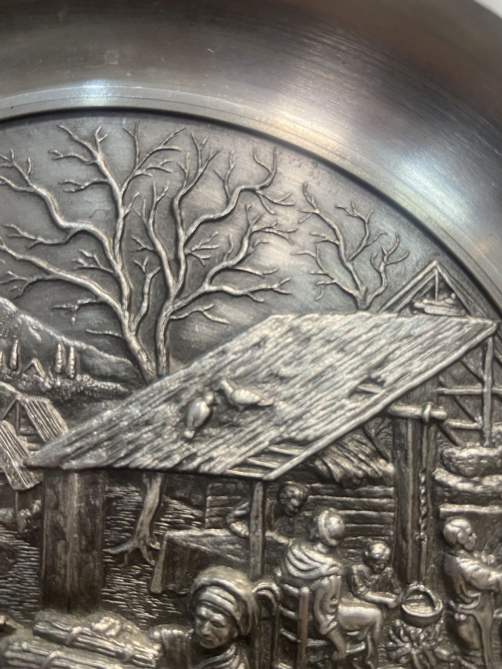 Оловянная тарелка с рельефным изображением Holzsammeln SKS Германия. 21 см