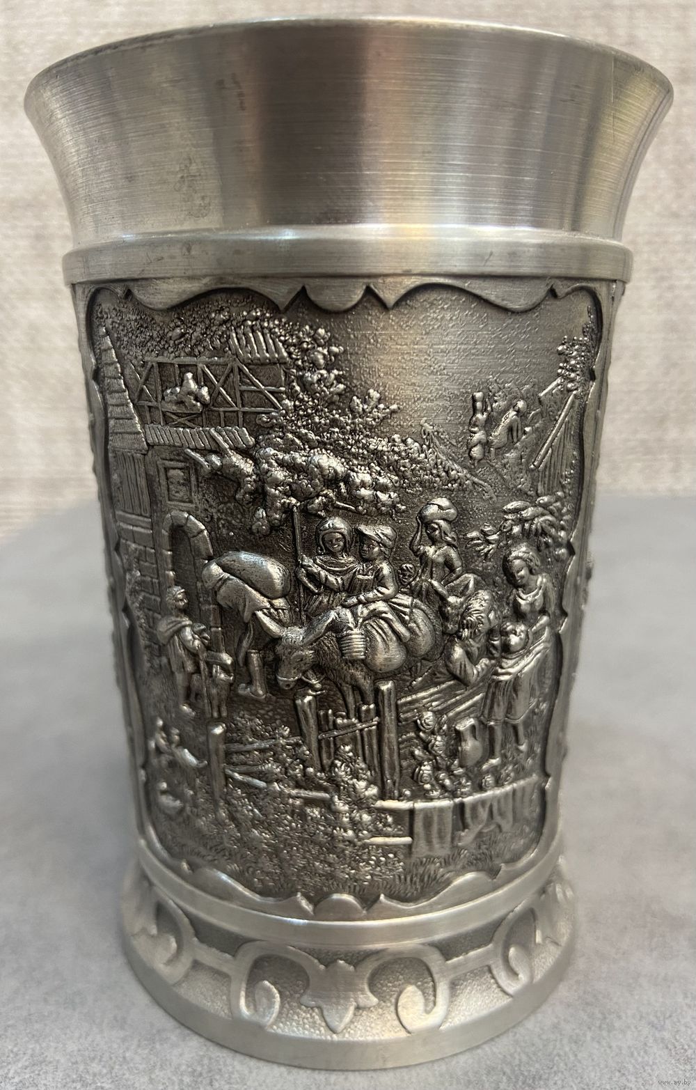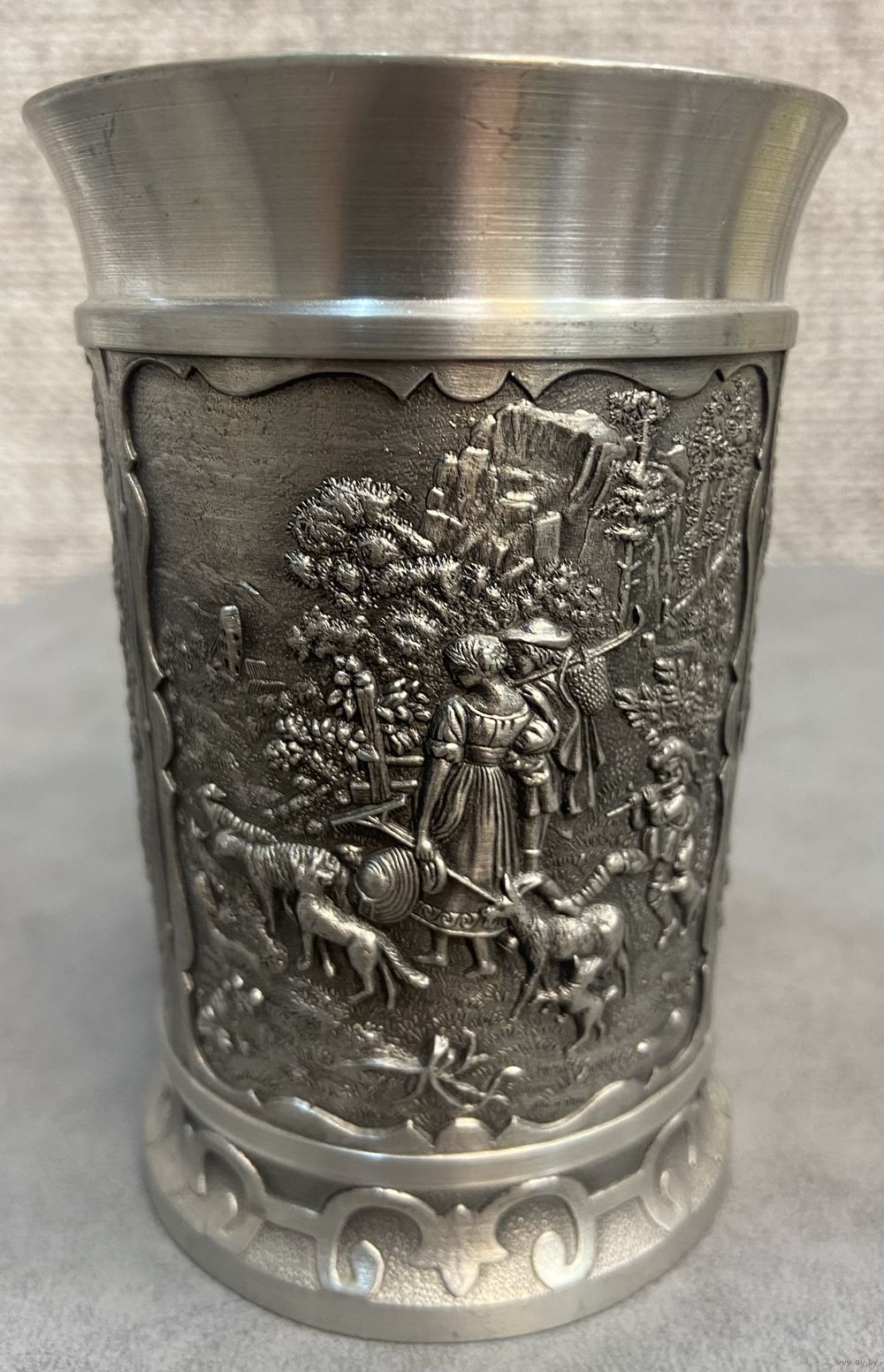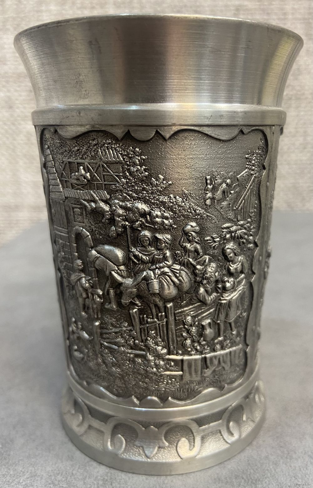 Оловянный стакан. Сельские зарисовки. SKS Германия. Высота 10.5 см 230 мл