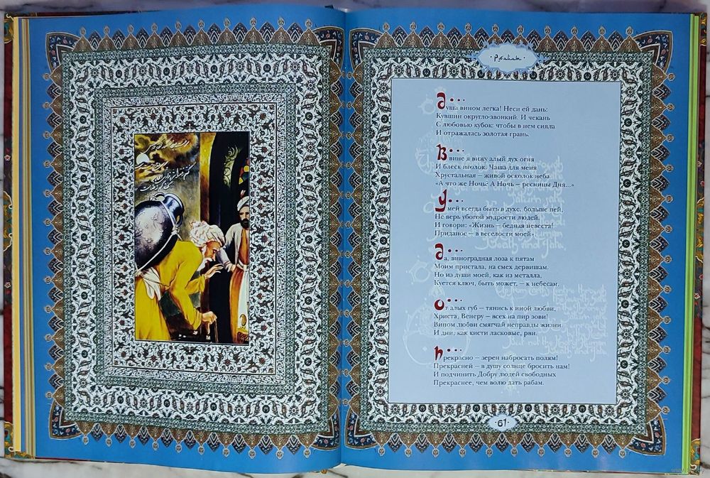 В поэтический сборник включены бессмертные четверостишия Омара Хайяма, классика персидской поэзии, великого философа, астронома и математика. Их веселая мудрость не скудеет с веками. Рубайат Омара Хайяма опьяняют, как воспетое в них вино, они так же нежны и дерзки, как объятия воспетых в них красавиц. На протяжении многих столетий они привлекают ценителей изящного своей драгоценной словесной огранкой. В филигранном четверостишии Хайяма умещается весь летучий жизненный маршрут человека, отражены метания любой мыслящей души: веселый спор с Судьбой и печальные беседы с Вечностью. Хайям сделал жанр рубаи широко известным, довел эту поэтическую форму до совершенства и оставил потомкам вечное послание, проникнутое редкостной свободой духа