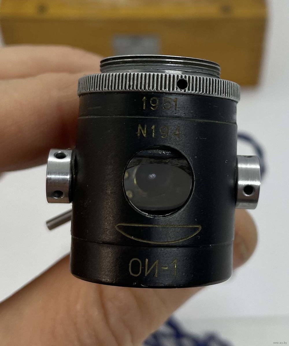 Устанавливается между стандартным объективом и микроскопом. Установлена лампочка на 6,3 Вольта. Необходим источник постоянного тока (батарейка или блок питания). Установлено полупрозрачное зеркало для подсветки исследуемого объекта через объектив