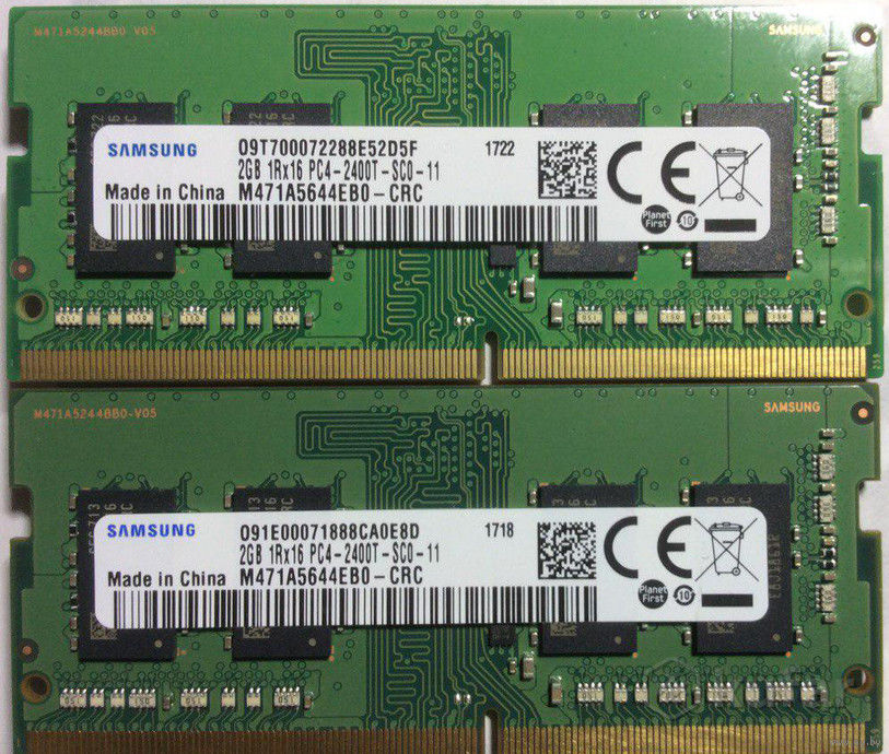 Оперативная память (ОЗУ) для ноутбуков SO-DIMM DDR4. Комплект из двух модулей (Kit of 2) Samsung DDR4 2GB + 2GB.