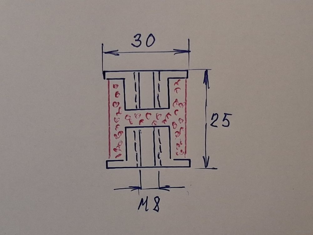 На рисунке размеры и устройство в разрезе. Красным обозначена резина.