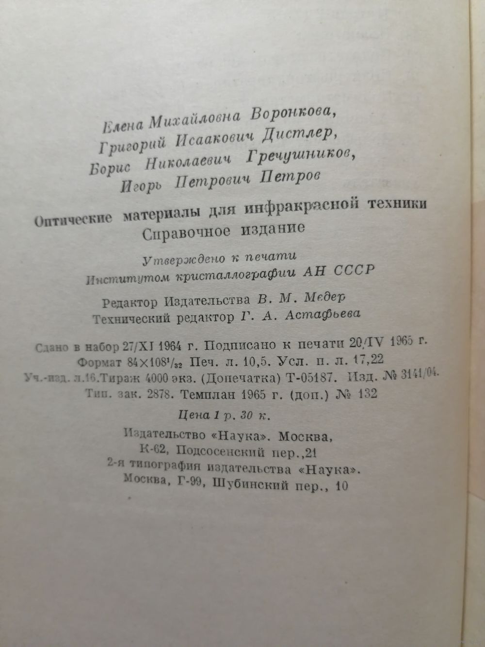 Настоящая книга посвящена определенному классу кристаллических материалов, а именно оптическим кристаллам, которые применяются в инфракрасной технике. для наиболее эффективного использования этих материалов требуется знание оптических, термомеханических, электрических и других характеристик. В результате анализа литературных данных отобраны 74 материала, которые либо уже широко используются в ИК технике, либо являются весьма перспективными, в том числе, стекла и пластмассы. Описание оптических материалов и их свойств и составляет содержание настоящей книги.