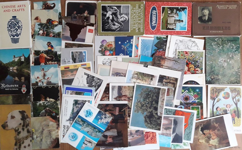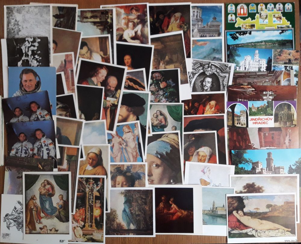 Открытки разной тематики: поздравительные, виды городов, живопись и т.п. + 7 наборов открыток.