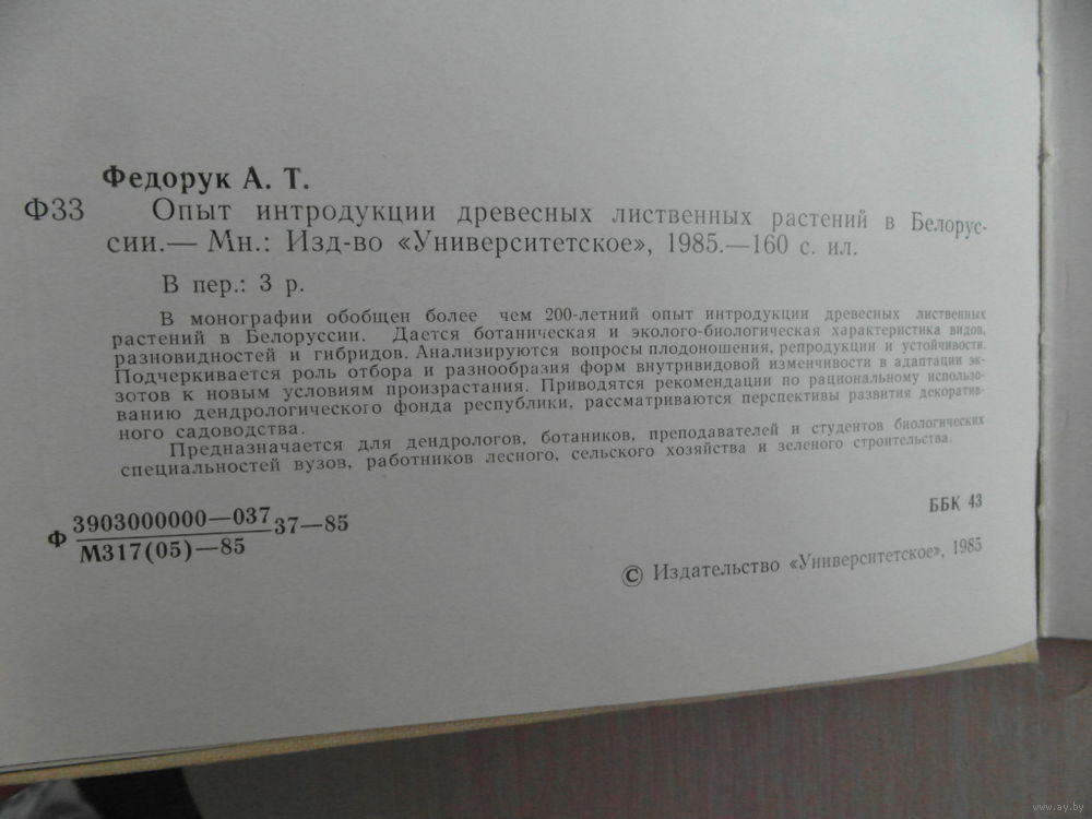 Федорук А.Т. Опыт интродукции древесных лиственных растений в Белоруссии. — Минск : Университетское, 1985.