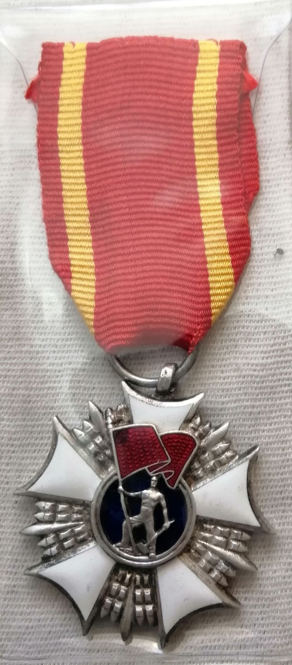 Орден "Знамя труда". Эмаль, бронза, с лентой.