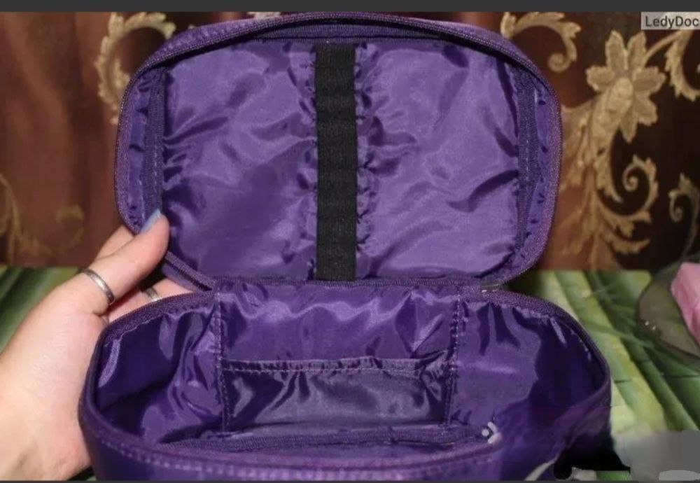 Вместительный органайзер для косметики и аксессуаров. Благодаря эластичным держателям внутри можно аккуратно хранить кисти для макияжа. Застегивается на молнию. Материал: нейлон.
