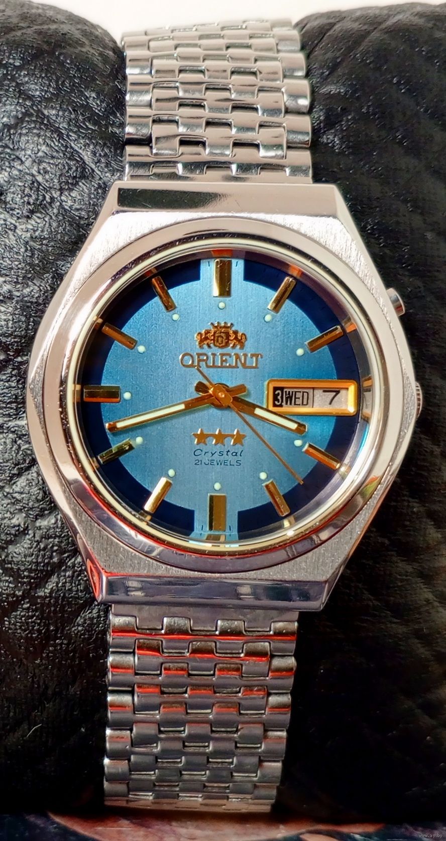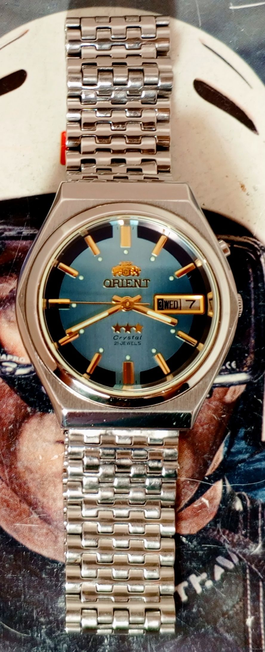 Редкие японские механические часы ORIENT 3 Stars Crystal. Автоподзавод (механизм 46941), двуязычный день недели, календарь мгновенного действие, центральная секундная стрелка, противоударное устройство узла баланса, водозащищённые, корпус часов и браслет изготовлен из высококачественной нержавеющей стали, минеральное стекло, светонакопительный состав на стрелках и метках на циферблате... Часы на уверенном ходу. Более подробную информацию о данных часах можно найти на просторах интернета. Уважаемые покупатели - ЗА РАБОТУ/ПОСЛЕДСТВИЯ СЛУЖБ ДОСТАВКИ Я ОТВЕТСТВЕННОСТЬ НЕ НЕСУ. ПОКУПАТЕЛЬ ПЕРВЫМ ВЫХОДИТ НА СВЯЗЬ В ТЕЧЕНИИ 2 (двух) ДНЕЙ! В ПОСЛЕДУЮЩИЕ 2 (ДВА) ДНЯ ВЫКУПАЕТ/ОПЛАЧИВАЕТ ЛОТ! Иное оговаривается заранее! Лот отправляю в течении пяти рабочих дней с момента полной оплаты. Делая ставку вы соглашаетесь с вышеуказанными условиями.