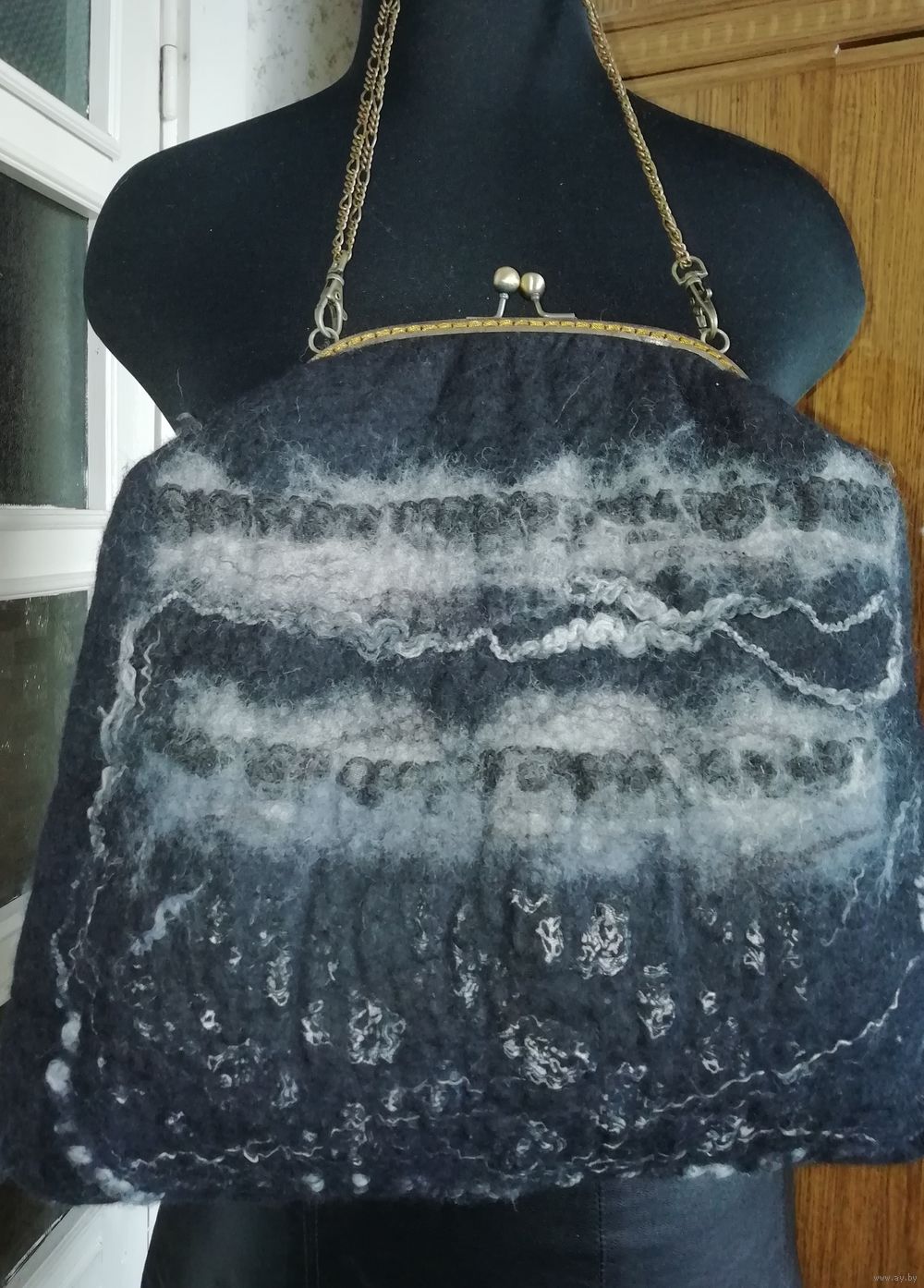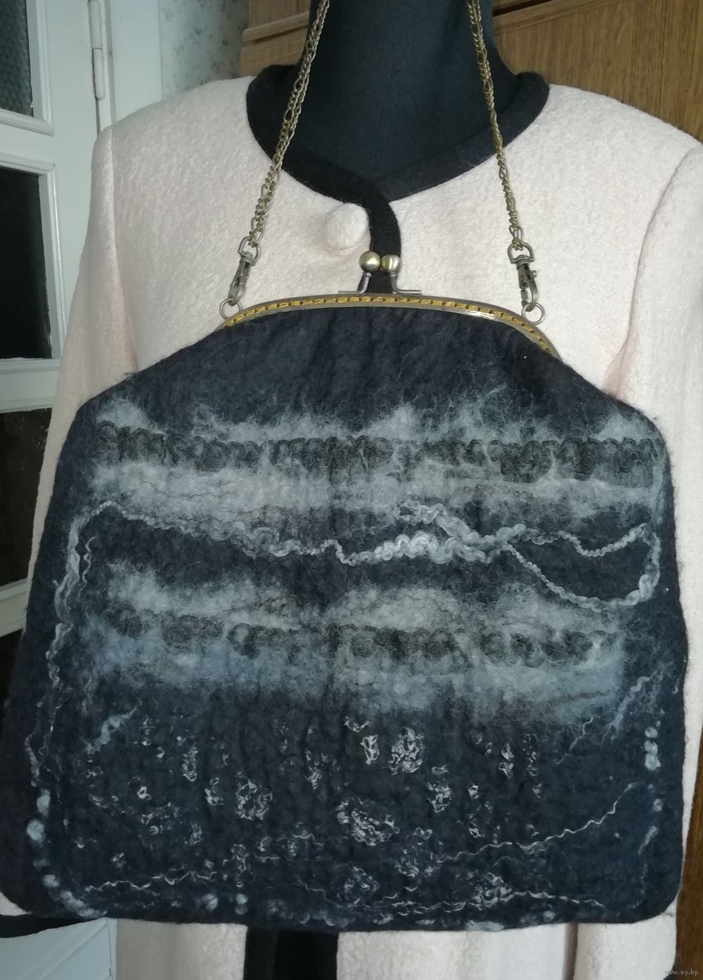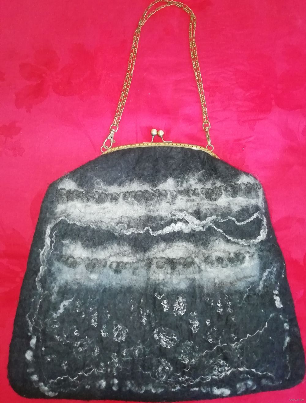 Высота сумки 35см,дно37см.сумка черного цвета с серым дополнением, смотрится оригинально. Есть берет из валяной шерсти(в другом лоте будет). Будут новые лоты мои.