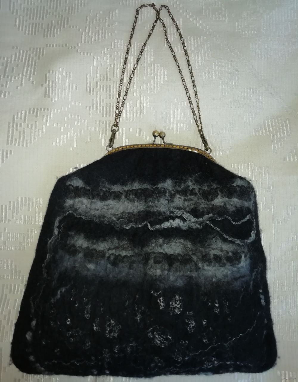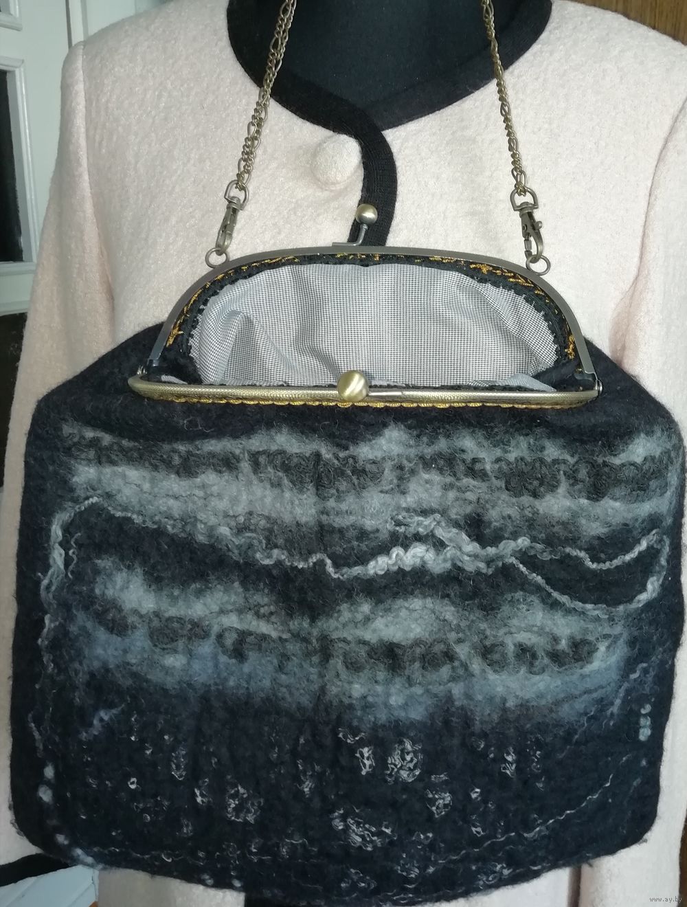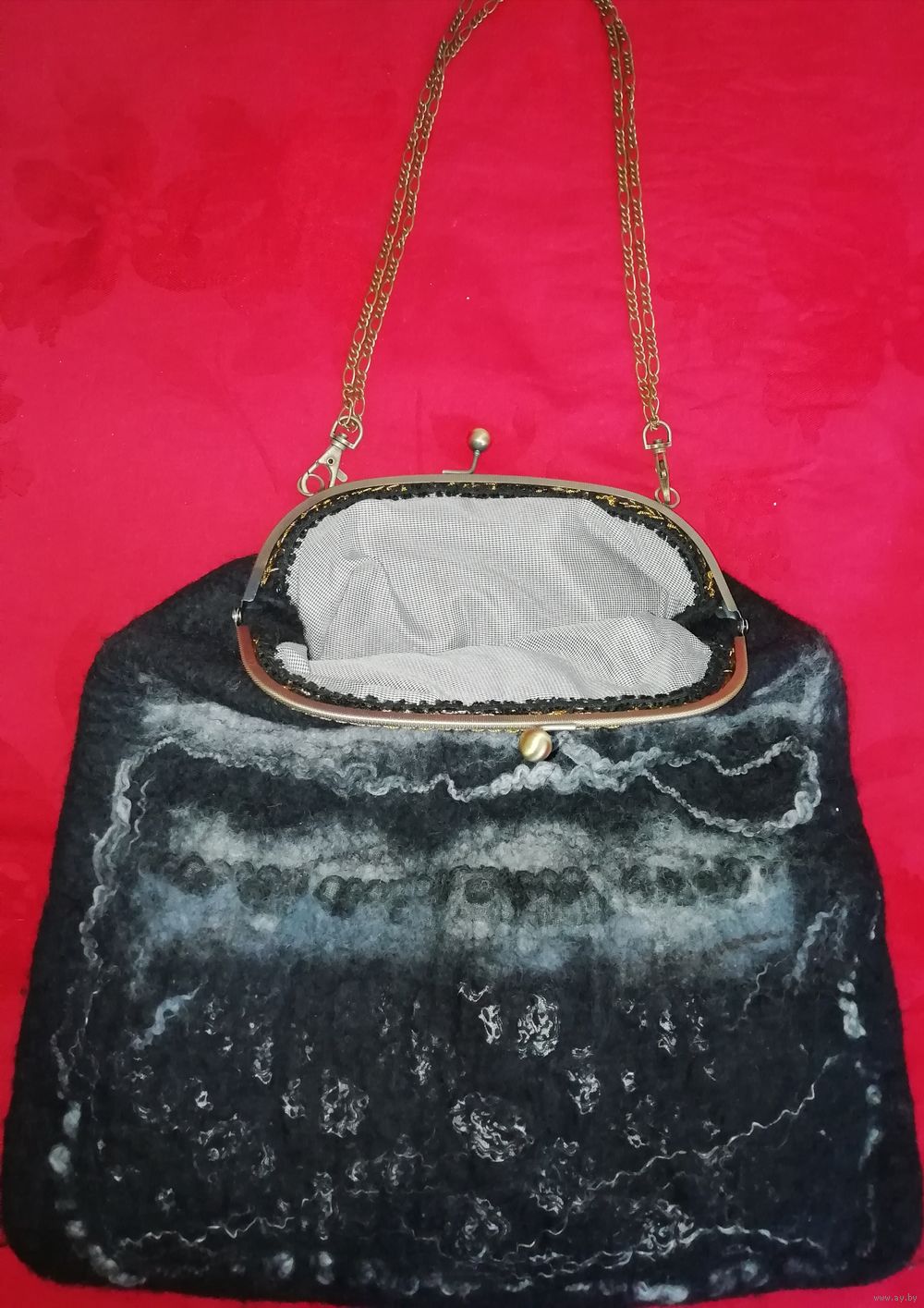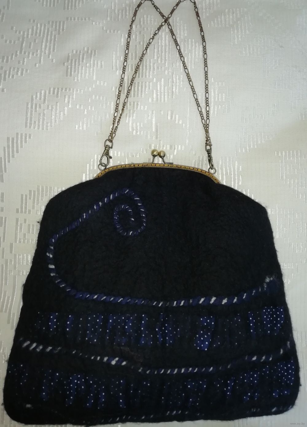 Высота сумки 35см,дно37см.сумка черного цвета с серым дополнением, смотрится оригинально. Есть берет из валяной шерсти(в другом лоте будет). Будут новые лоты мои.