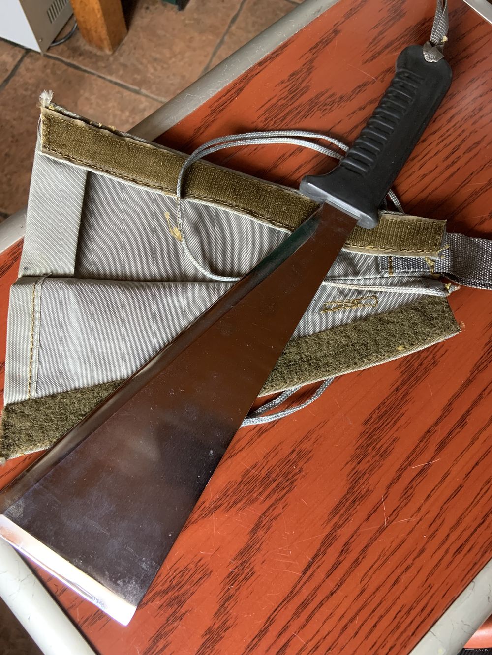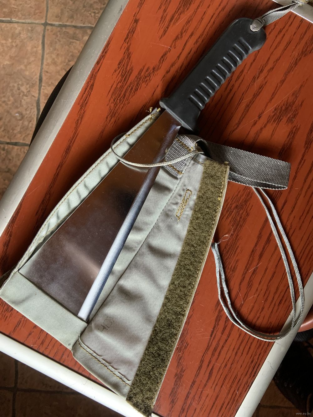 | используется как лопатка, тапорик . мачете и можно даже разогреть пищу-рукоять не плавится. В оригинальном чехле из прочной чешской ткани. | |