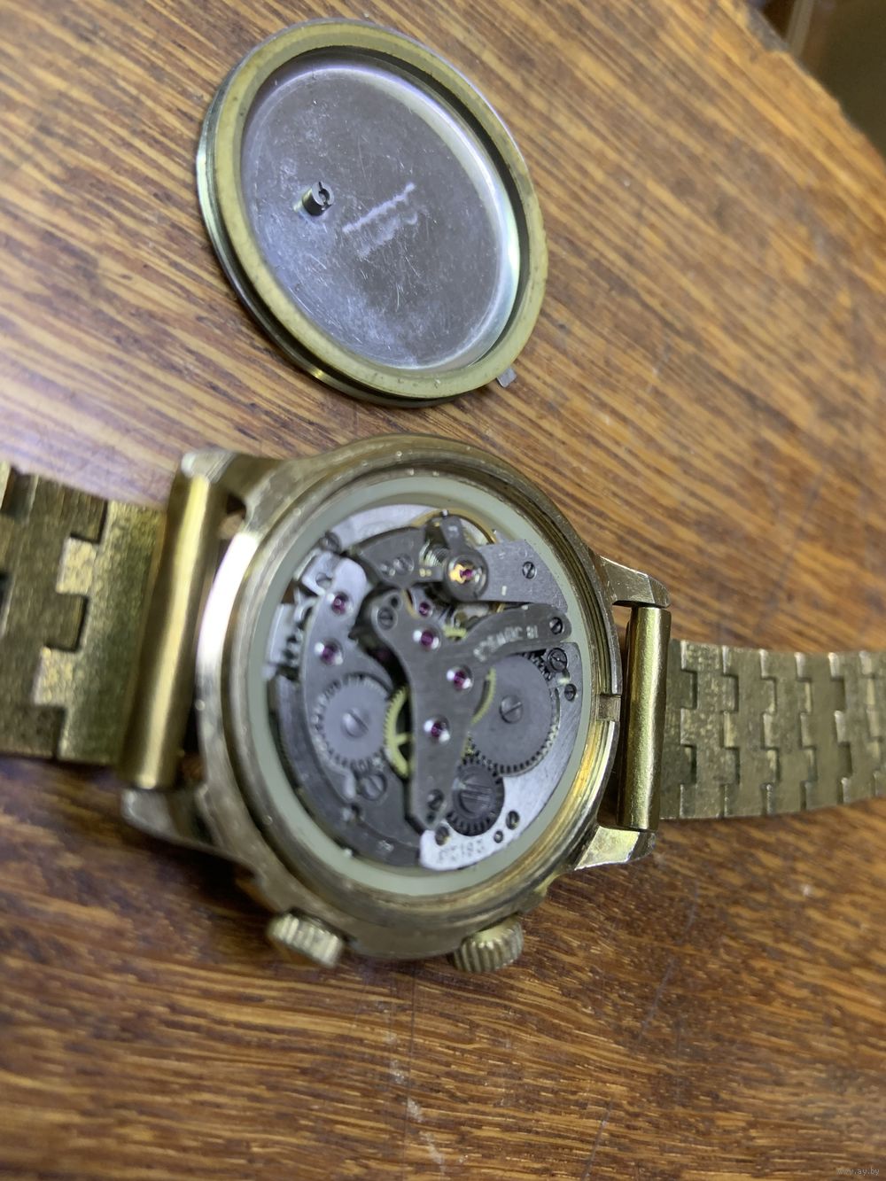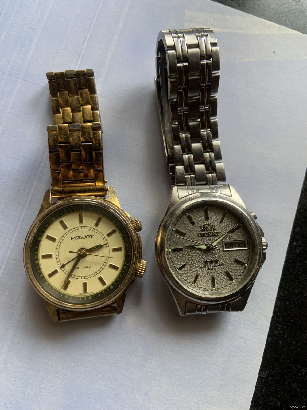 | пластиковое стекло.Даже чем-то похожи на японский "Ориент"-см.последнее фото. сделана профилактика мастера-состояние отличное. а цена от состояния! | |