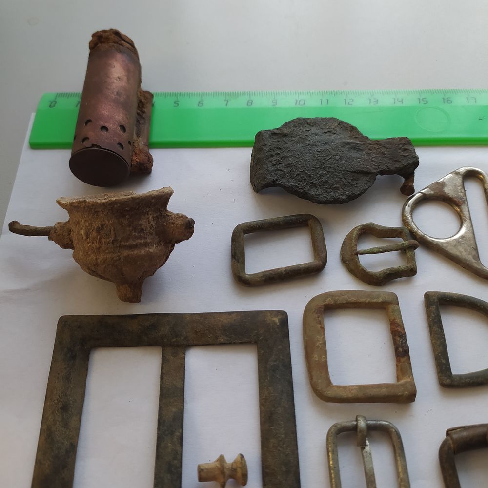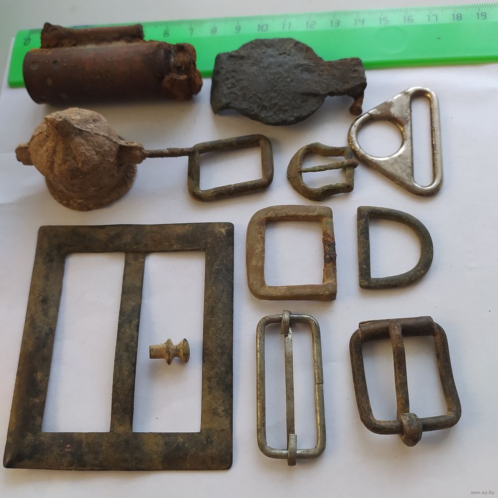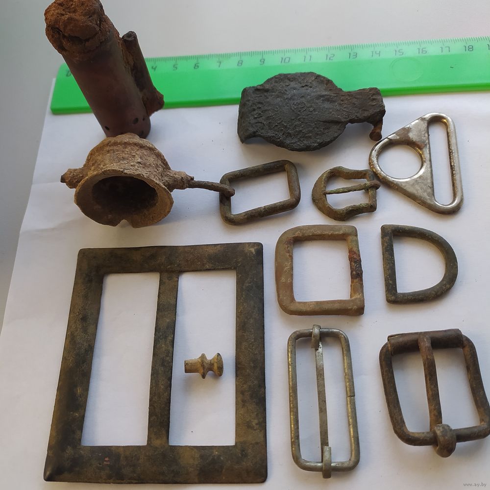 Оригинальные в/вещи старинные; зажигалка, лампадка, пряжки по пмв, латунные и другие в.вещи-11шт.