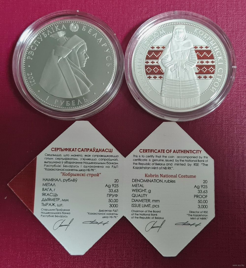 Оригинальный комплект: 1 рубль медно-никель 30 грамм.+20 рублей серебро 31,1 грамма 925 пробы. Серия Кобринский строй.