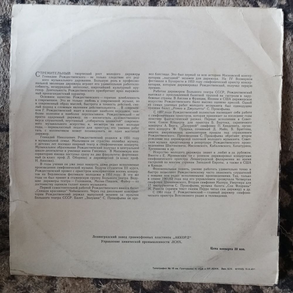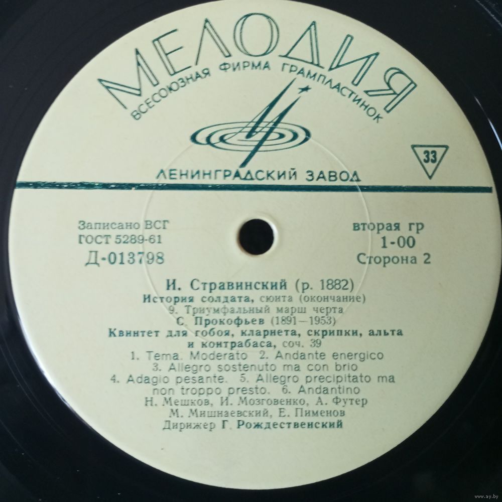 Оркестр, дир. Г. Рождественский - И. Стравинский. История солдата (сюита) / С. Прокофьев. Квинтет для гобоя, кларнета, скрипки, альта и контрабаса - ЛЗГ - 1964 г.