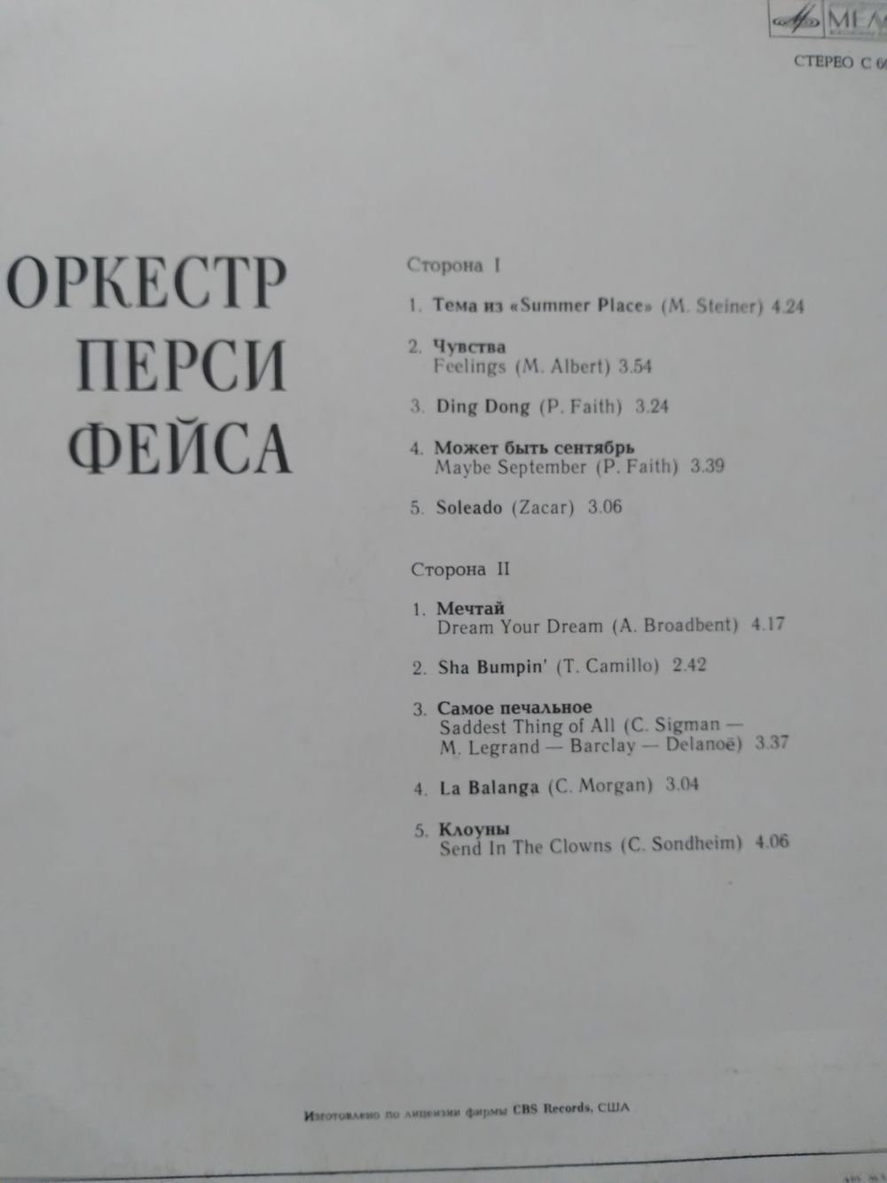 | Исполнитель | ПЕРСИ ФЕЙС |