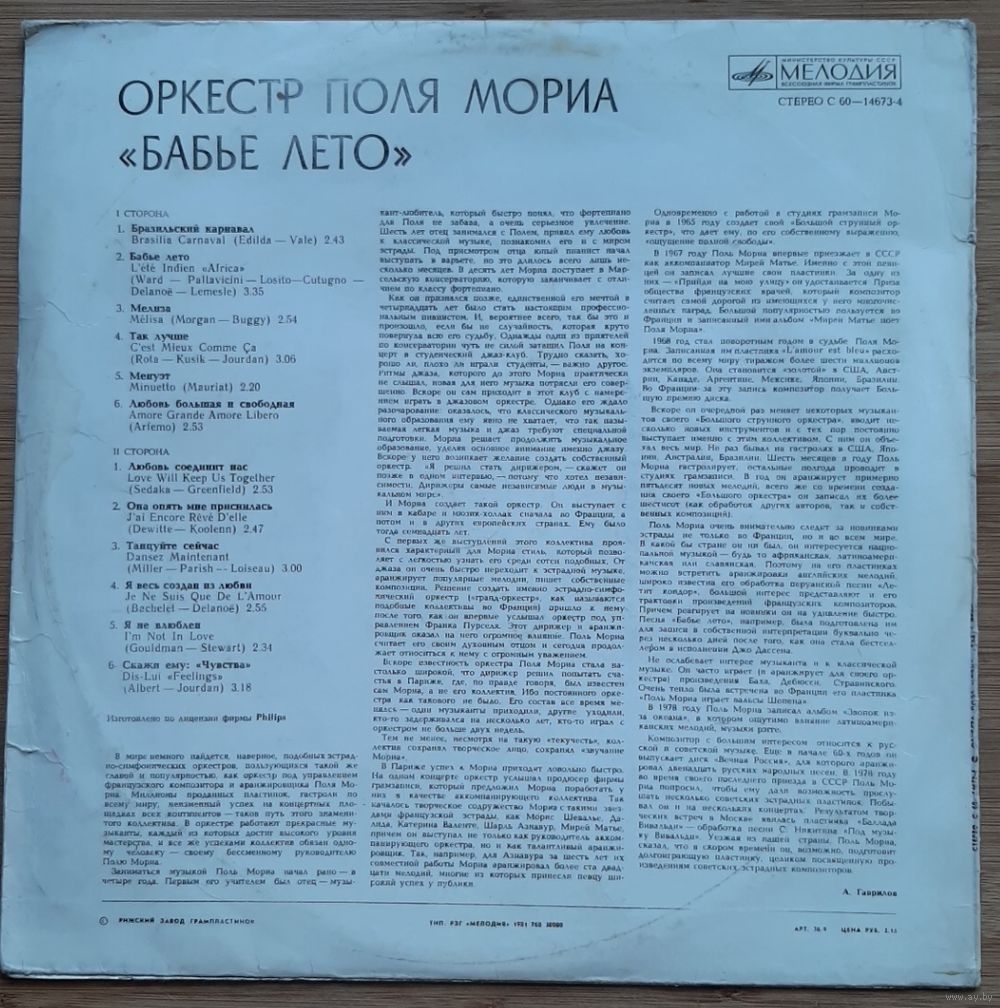 Оркестр Поля Мориа Бабье лето