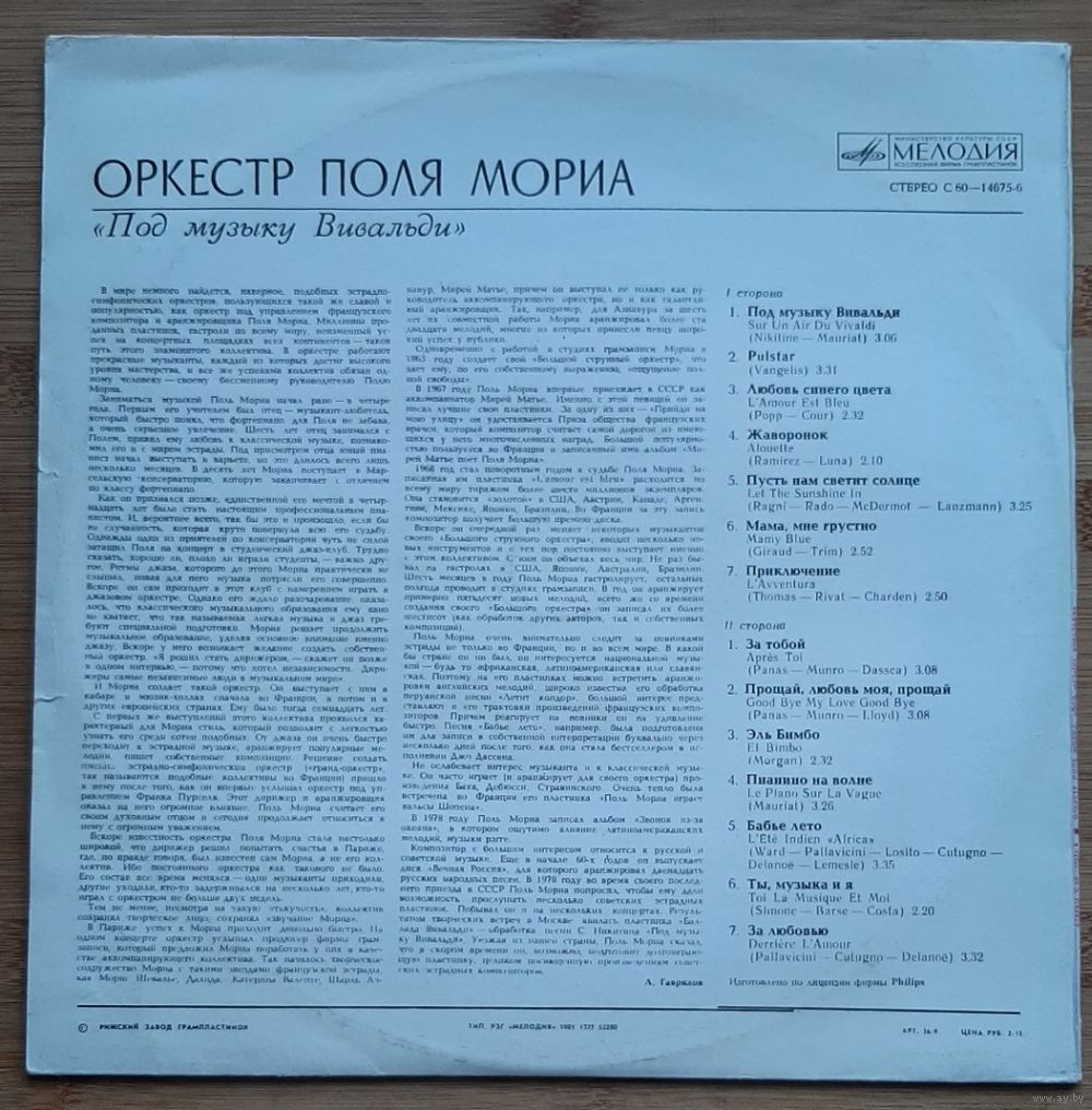 Оркестр Поля Мориа – Под Музыку Вивальди