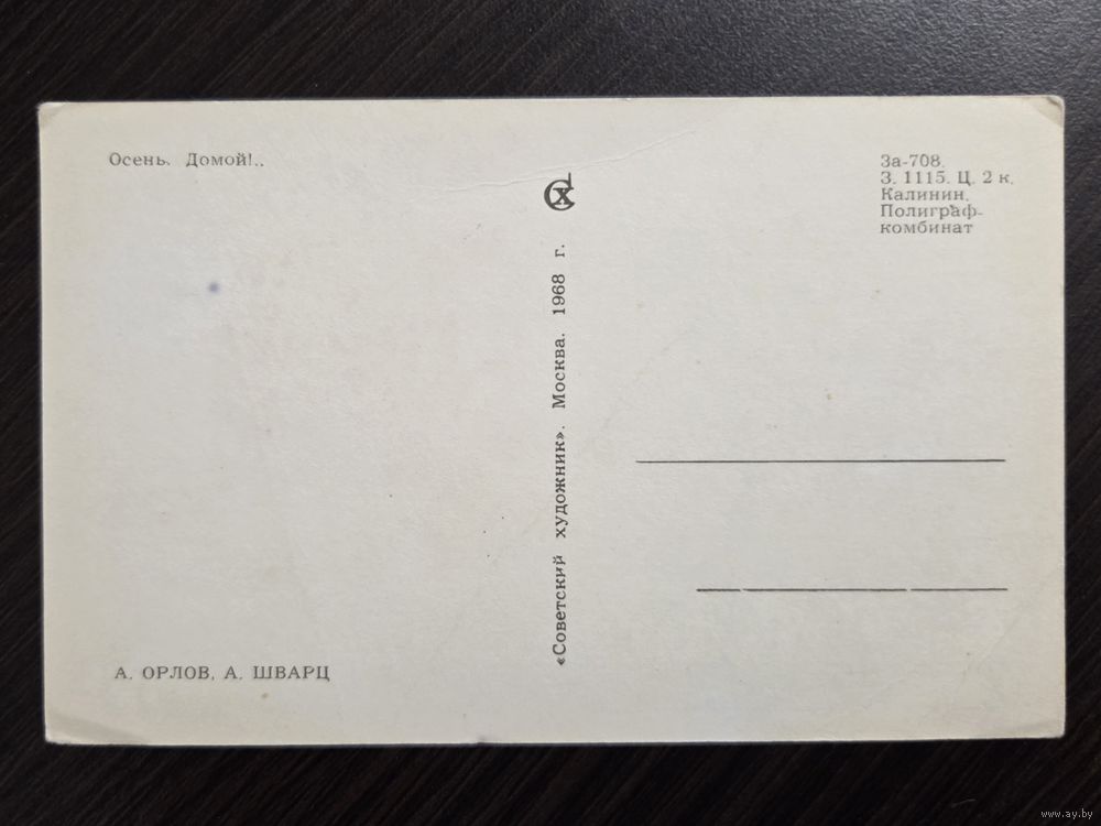Орлов Шварц Осень Домой 1968 чистая открытка СССР