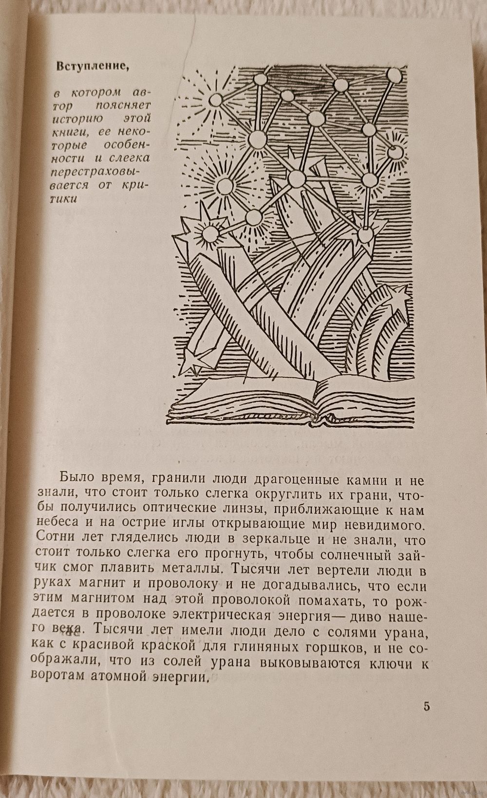 Это не учебник, не учебное пособие по изобретательству. Это научно-художественная книга о человеческой мысли, изменяющей мир, в котором мы живем, творящей, по словам К. Маркса, «вторую природу». Размышляя о том, как рождаются изобретения, автор наряду с историческим материалом, относящимся к временам стародавним, привлекает также и собственные живые впечатления от знакомства с такими научными и техническими достижениями современности, как первая советская атомная электростанция, советский атомоход «Ленин», лазеры, искусственные алмазы и т. д.