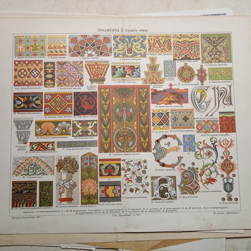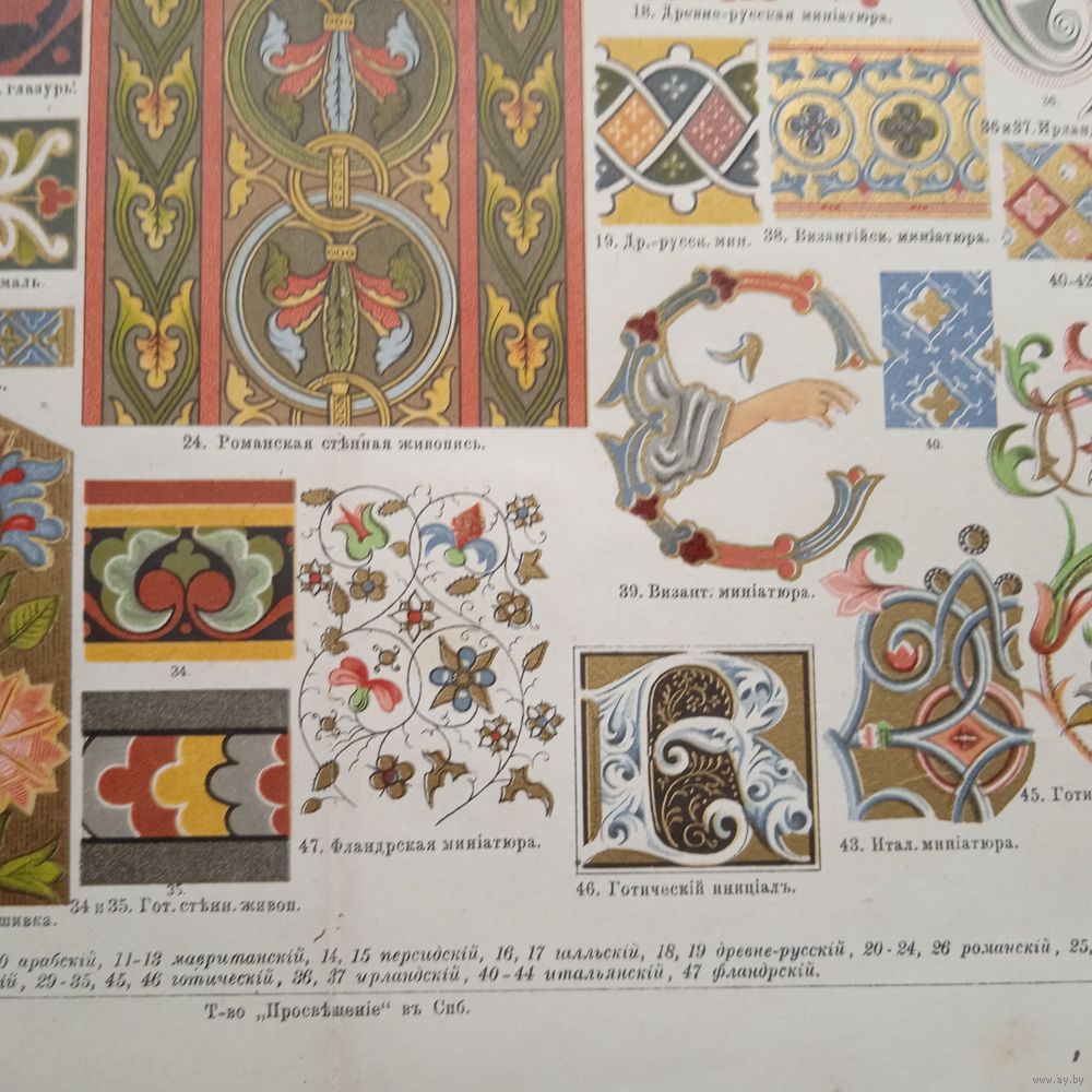 Орнаменты 2. Литография СПБ. Гравюра конец 19века 31x24см. РАСПРОДАЖА КОЛЛЕКЦИИ.
