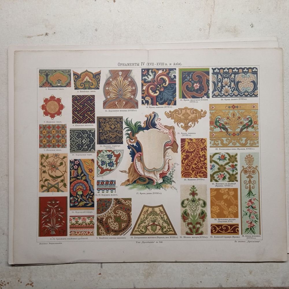 Орнаменты 4 . Хромолитография 1900г. Спб. 31х24см.