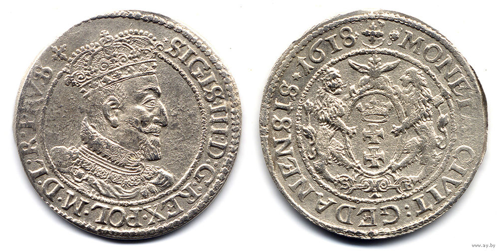 Ав - портрет короля вправо в доспехах с орденом Золотого руна, окончание легенды R:PRVS:*, Рв. - миниатюрные буквы SB у лап львов.