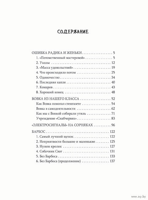 Ох уж эти мальчишки - им не сидится на месте! То и дело они выдумывают себе приключения, и каждый день у них полон больших и маленьких событий. Вот, например, Вовка Иванов запросто бесстрашно прыгает с крыши, бежит по перилам мостика, как кошка, карабкается на дерево. А Радик и Женька, самые прославленные ребята из пятого "Б", могут смастерить что угодно: хоть целых десять штук аквариумов для зоокабинета. Мальчишки умеют не только озорничать, но и горазды на полезные выдумки!
