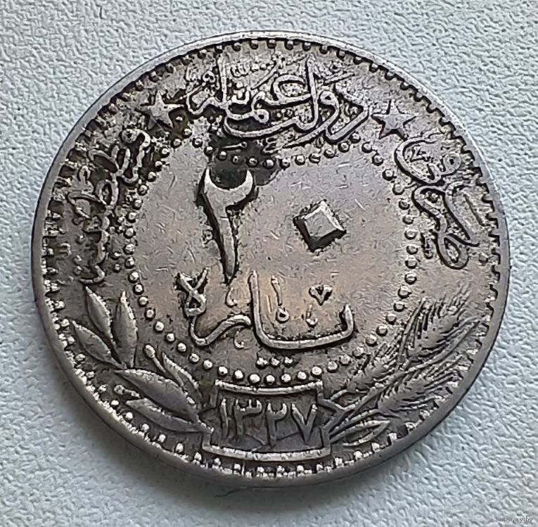 Османская империя 20 пара, 1909 цифра "E" 7-14-10