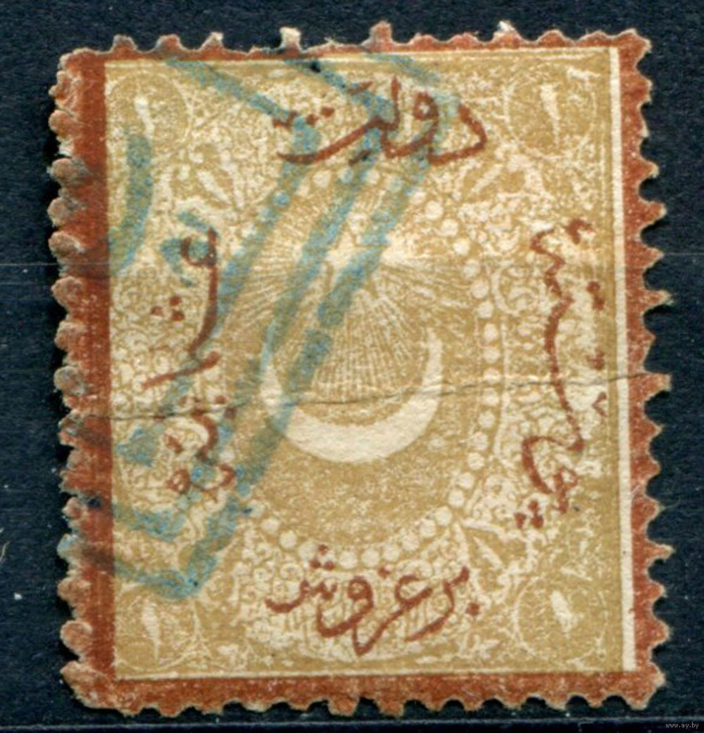 ![Османская Империя (Турция) - 1869г. - полумесяц и звезда, доплатные марки (portomarken), перфорация 13 1/4, 1 Ghr - 1 марка - гашёная, есть сгиб [Mi 12 А а]. #4-W2-122-A-1](https://s1-lot.aystatic.by/550x510/890/705/5040/5040705890_0.jpg)
