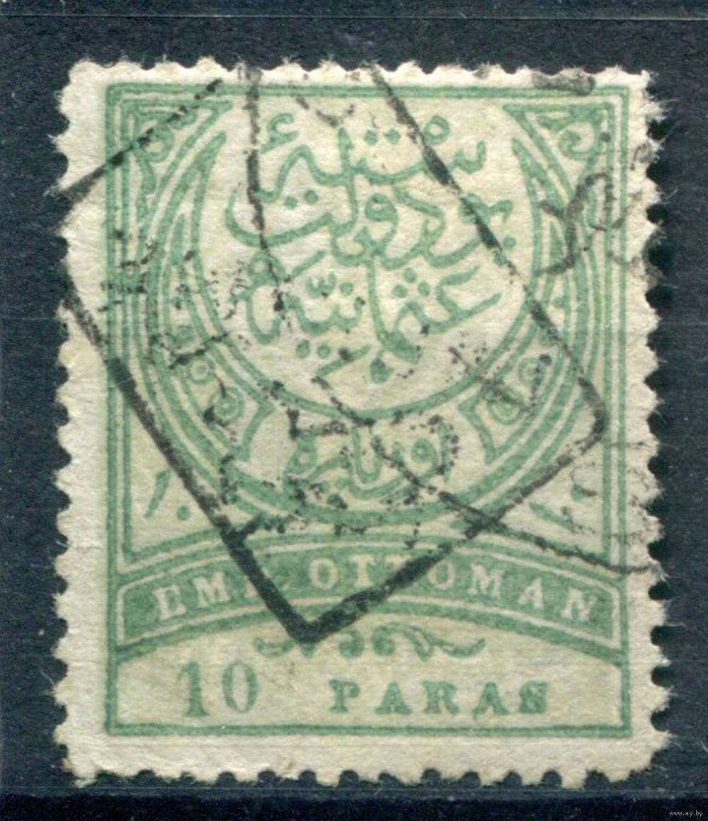 ![Османская Империя (Турция) - 1891г. - полумесяц, чёрная надпечатка IMPRIME, перфорация 13 1/4, 10 Pa - 1 марка - гашёная [Mi 64 а А]. #4-W2-116-A-1](https://s1-lot.aystatic.by/550x510/651/579/5040/5040579651_0.jpg)