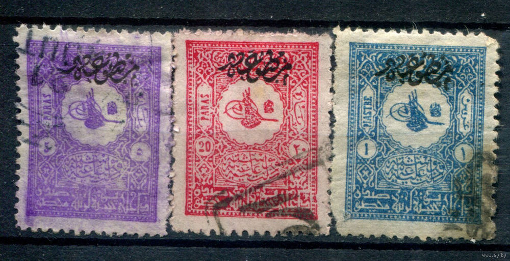 Османская Империя (Турция) - 1901/05г. - тугра Абдул Хамида II, надпечатка, перф. 13 1/4 - 3 марки - гашёные. #4-W2-112-A-1