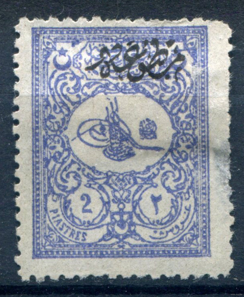 ![Османская Империя (Турция) - 1901г. - тугра Абдул Хамида II, 2 Pia - 1 марка - чистая, без клея, есть маленькое тонкое место справа возле перфорации [Mi 112 A]. #4-W2-126-A-1](https://s1-lot.aystatic.by/550x510/270/757/5040/5040757270_0.jpg)