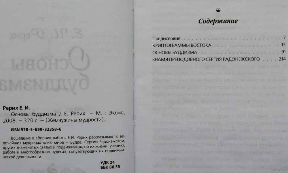 Тираж 4000 экз. 320 стр. Великий Готама дал миру законченное учение жизни. Всякая попытка сделать из великого эволюционера Бога — приводит к нелепости. Конечно, до Готамы был целый ряд подвижников общего блага, но учение их распылилось сотнями веков. Потому учение Готамы должно быть принято как первое учение знания законов великой материи и эволюции мира. Говоря об основах Буддизма, нельзя останавливаться на позднейших усложнениях и разветвлениях. Важно знать, что идея очищения учения всегда жива в буддийском сознании. Вскоре после смерти Учителя начались известные соборы в Раджагрихе, потом в Весали и в Патне, возвращая учение к его первоначальной простоте. Книга «Основы Буддизма» была собрана Е. И. Рерих и издана на русском языке в Монголии (1926). Елена Ивановна не прекращала работу над книгой в течение всей своей жизни. Дополненное издание на английском языке под псевдонимом Наталия Рокотова увидело свет в 1930 году, в 1940 году — на русском. Уже после ухода из жизни Е.И. Рерих, в 1971 году, ближайшая сотрудница Рерихов З. Г. Фосдик выпустила второе издание на английском языке с новыми добавлениями, подготовленными Еленой Ивановной; в России в 1970-х годах был сделан его перевод.
