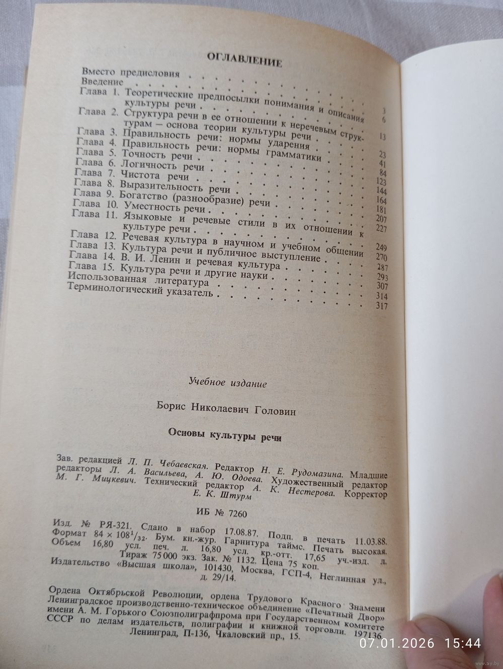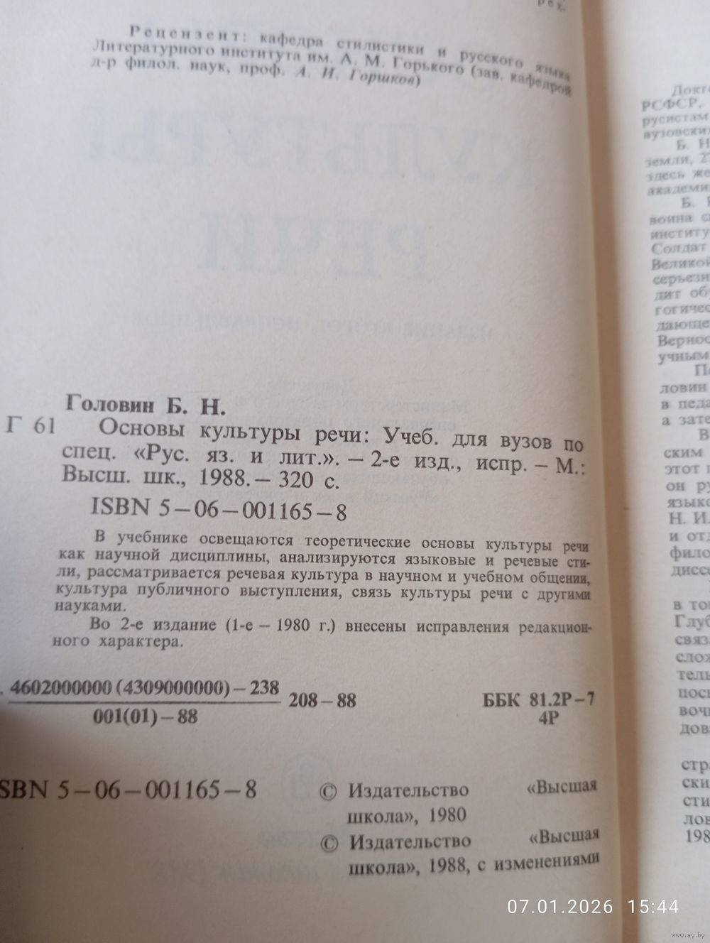 Основы культуры речи. Учебник для вузов. Головин Б. М. Высшая школа 1988. В хорошем состоянии, тв переплет. 320 с. Возможность отправки Белпочтой, полная предоплата
