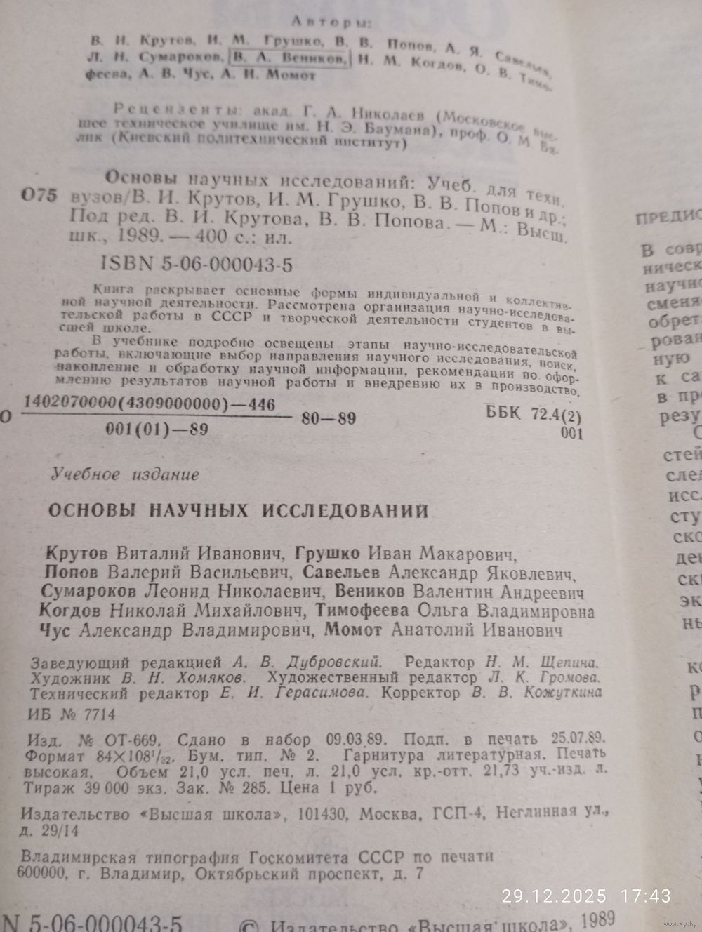 Основы научных исследований. М. Высшая школа 1989. В хорошем состоянии, тв переплет. 400 с. Иллюстрации. Возможность отправки Белпочтой, полная предоплата